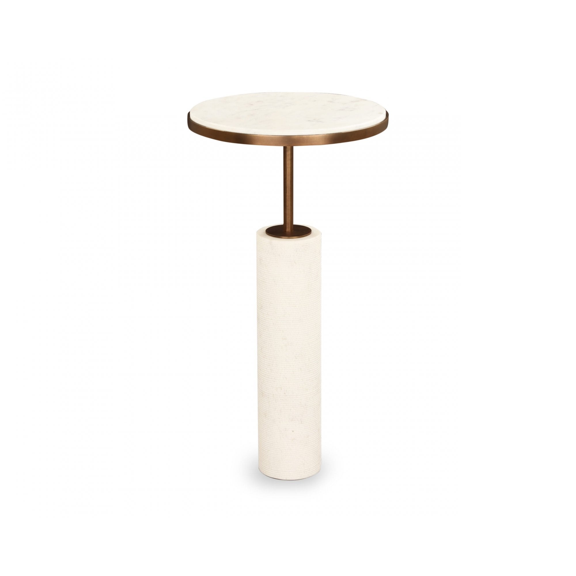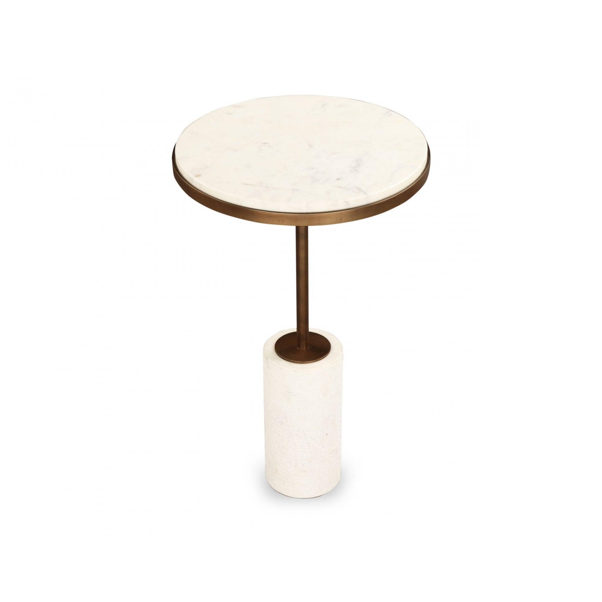 Dolmec Antique Brass Metal & White Marble Nest of Tables (Set of 2)