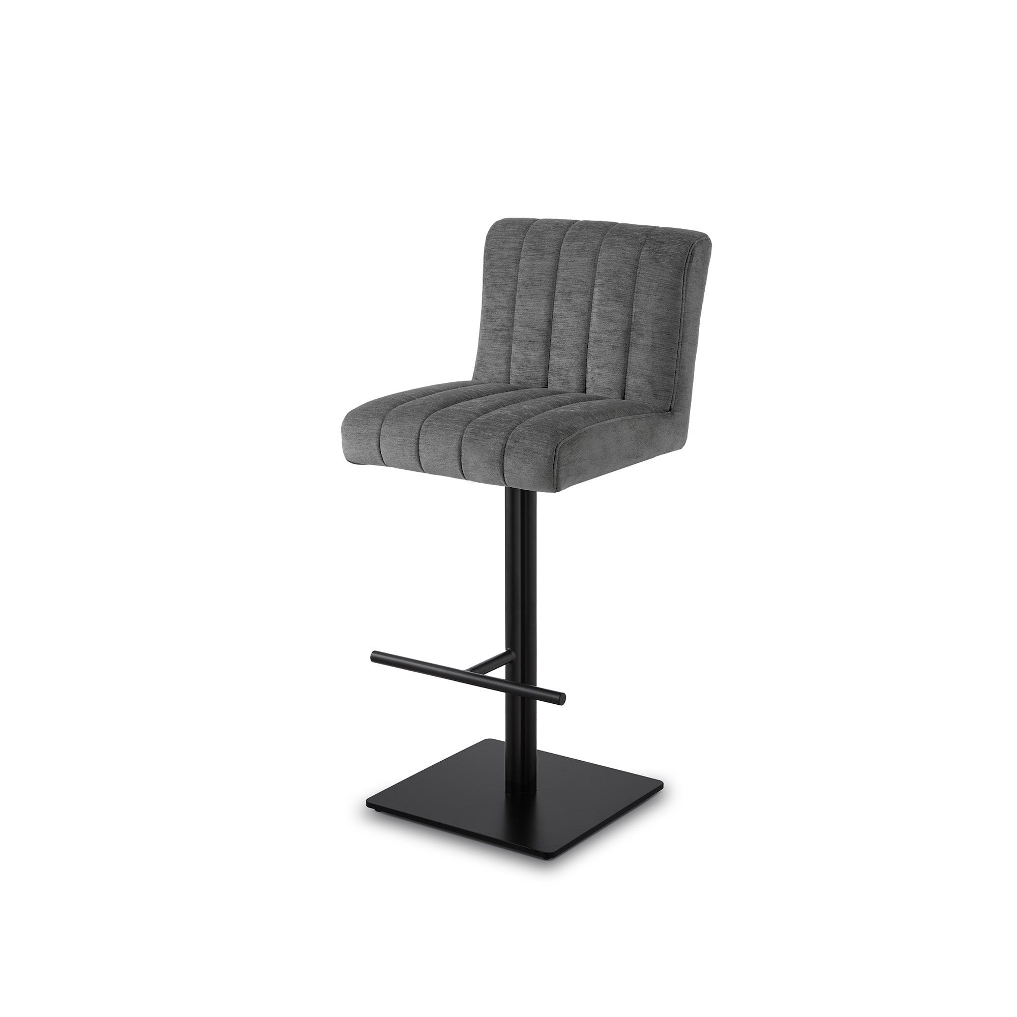 Indulge in the unmatched sophistication of the Dukes Bar Stool, upholstered in luxurious Sysley Chalk II chenille fabric. This bar stool features a supportive backrest and a matte black steel base, ensuring comfort and style. Perfect for casual breakfasts or lively gatherings, it combines classic charm with contemporary elegance.