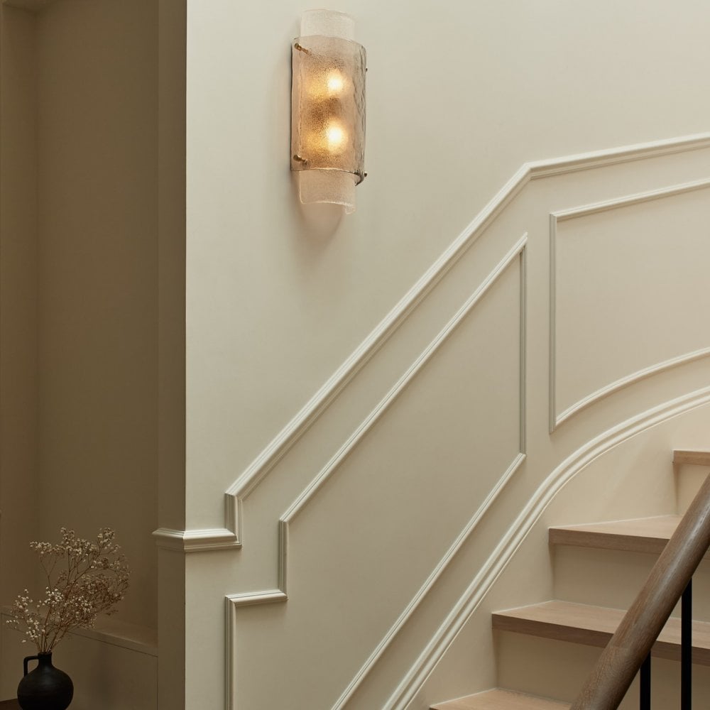 Dulcie Wall Light Satin Brass & Mist Clear Textured Glass Shade