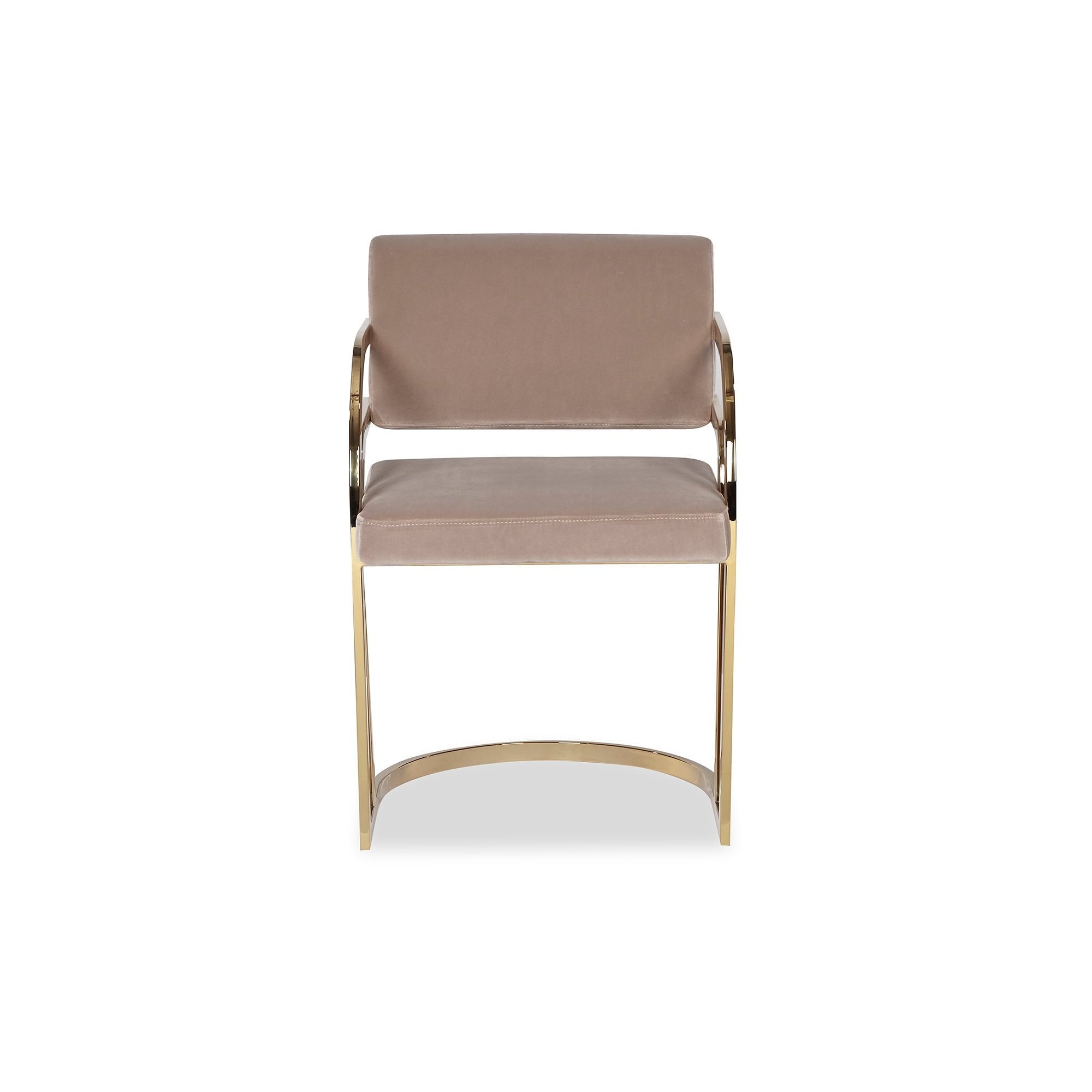 Discover the luxurious Dylan Dining Chair in Gainsborough Mink Velvet, enhanced with polished brass finish legs. This chair not only offers unparalleled comfort with deep padding but also exudes elegance, making it a perfect addition to your dining room decor.