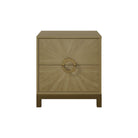 This luxury weathered oak bedside table creates the perfect luxury look within your home. Crafted with stunning antiqued brass hardware and oak and oak veneer. Featuring sunburst sandblasted effect, gold style metal base and gold style semi circular handles. This bedside table will look stylish in any bedroom.