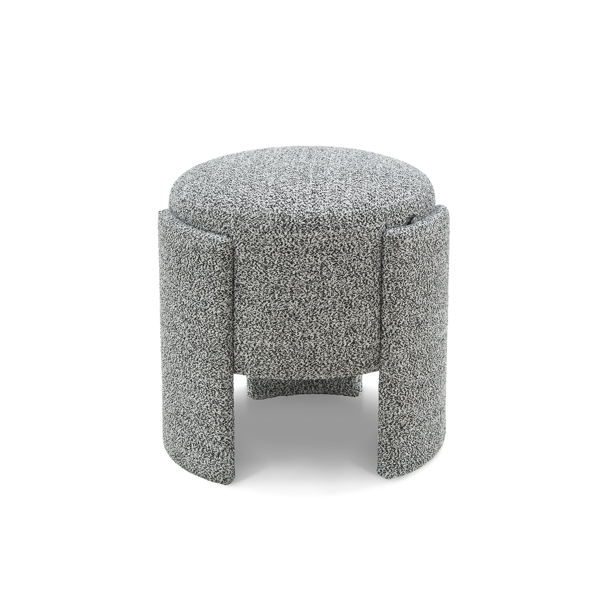 The Ed Ottoman in Cordoba Speckle Grey combines elegant hues of grey, white, and neutral tones in luxurious Chenille fabric. This versatile piece complements modern and traditional decor, adding a sophisticated touch to your living areas.