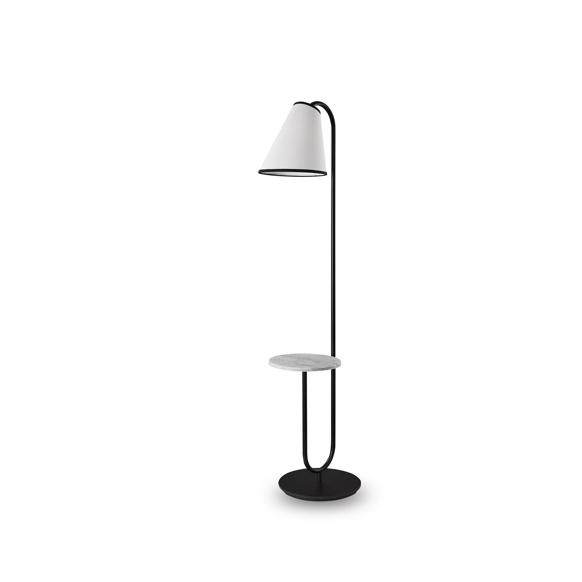 Edgar Carrara Marble & Black Metal Floor Lamp