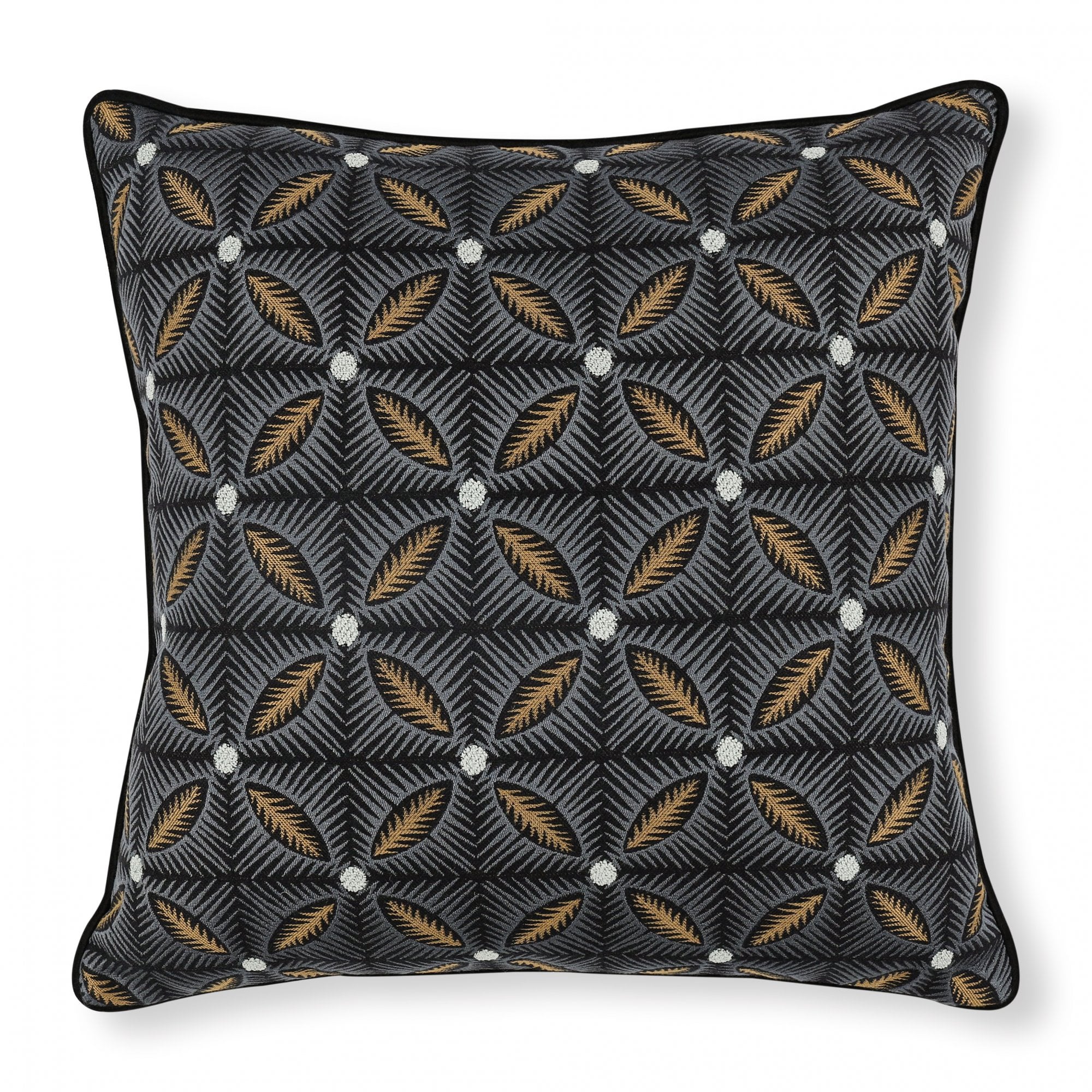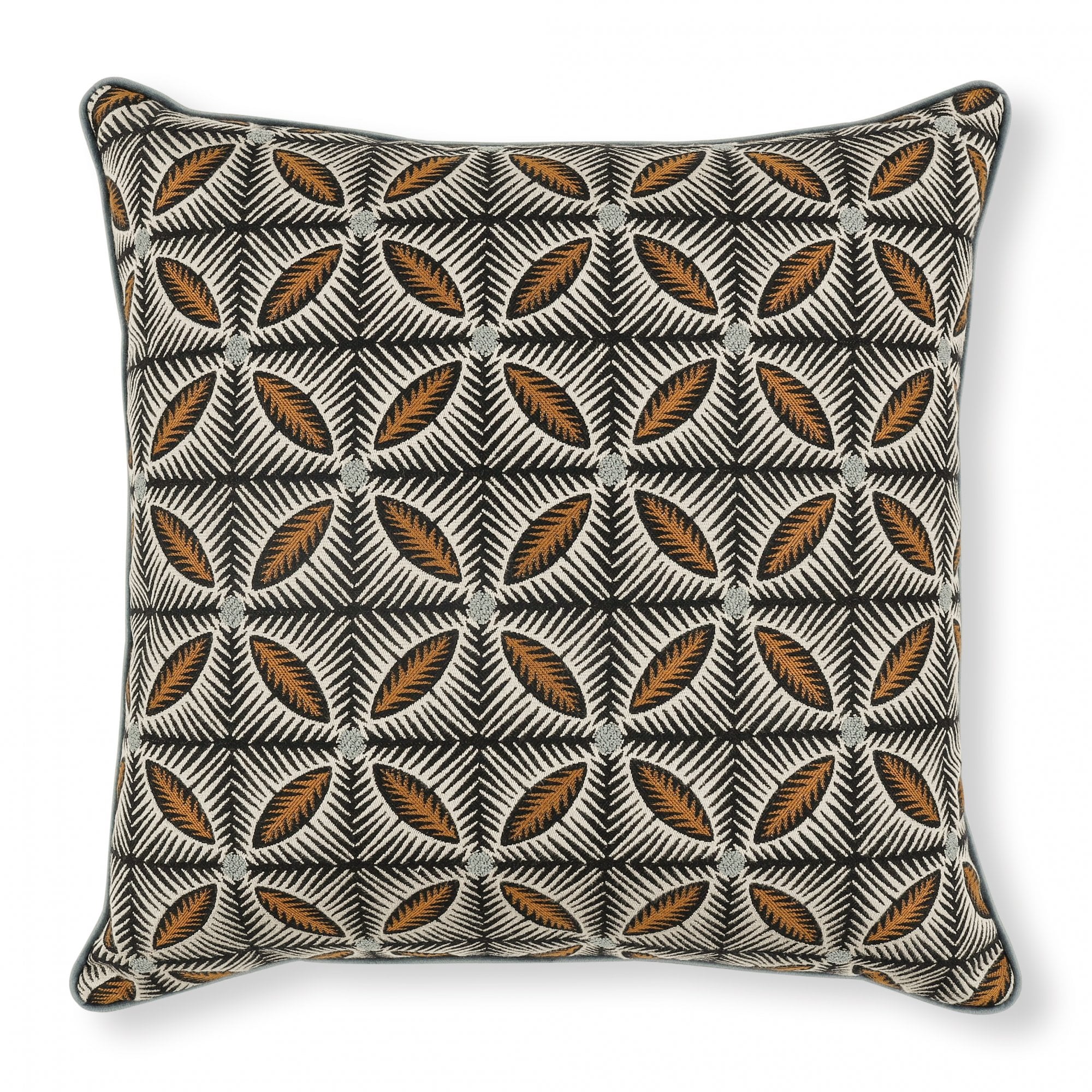 Full of impact, this pretty geometric cushion with colourful bouclé spots is beautifully accentuated by an indulgent cotton velvet reverse and understated piping.