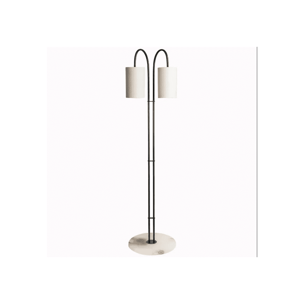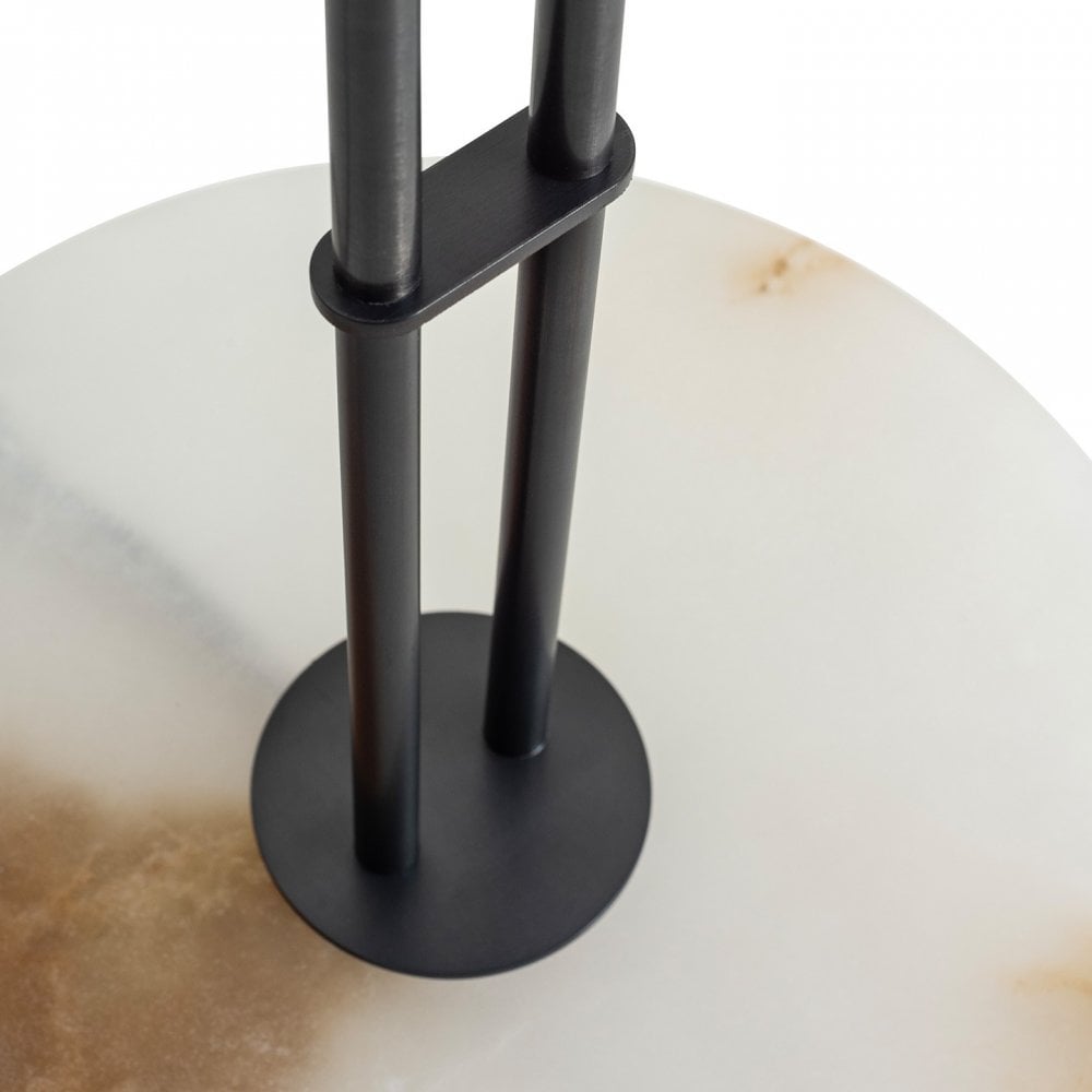 Our Elba floor lamp provides a sophisticated and versatile addition to any interior. The elegant elongated lampshades are paired with arched Bronze metalwork set on top of a veined solid alabaster backplate.