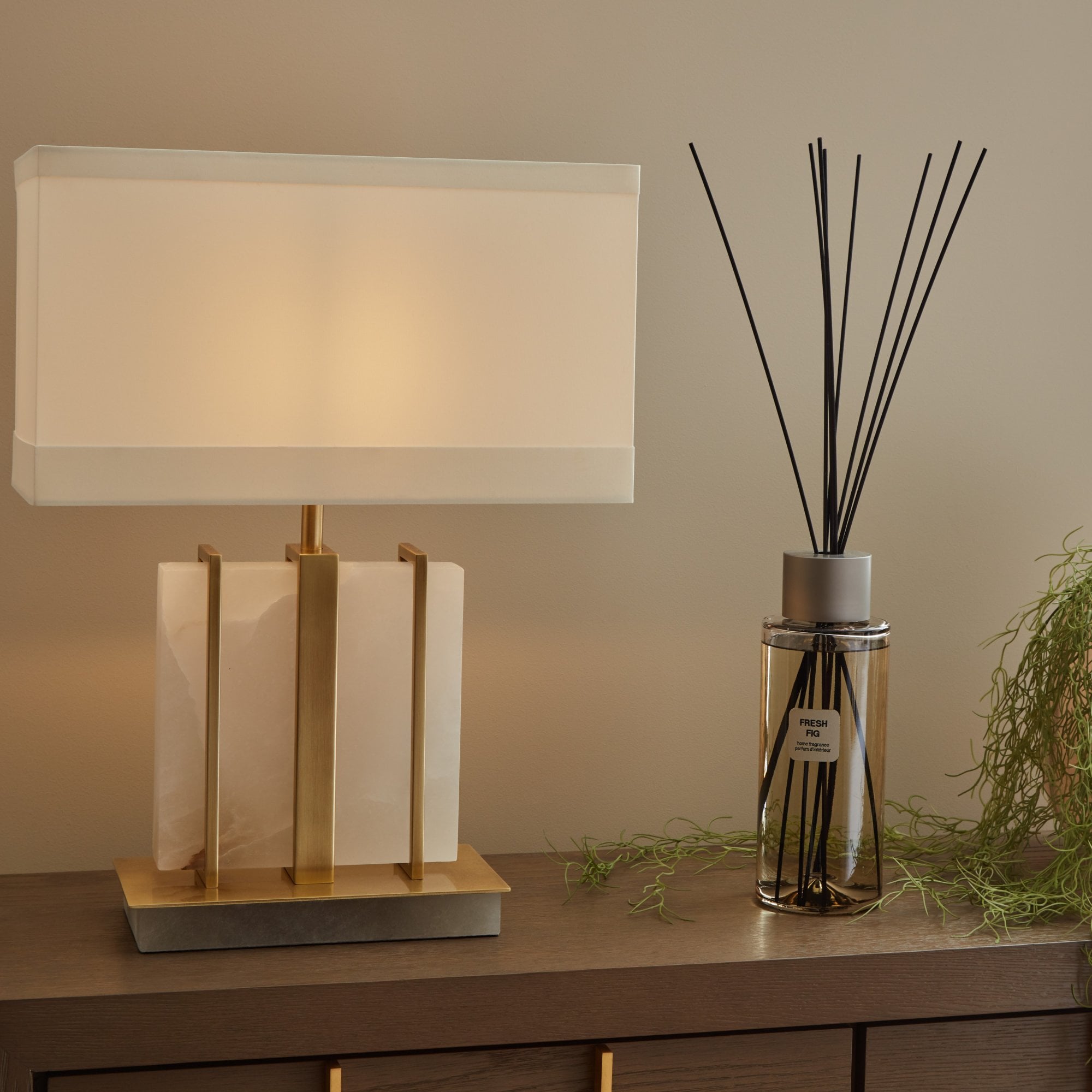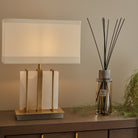 The Kelcie Table Lamp is expertly designed to make a striking statement in any space. Featuring a bold combination of white marble and antique brass as its base, this lamp exudes a sense of sophistication and modern elegance. The unique mix of materials not only enhances its visual appeal but also ensures it stands out as a commanding presence in your décor. Perfect for living rooms, bedrooms, or offices, the Kelcie Table Lamp beautifully blends functionality with artistry, illuminating your space as a stunning focal point. The slim profile and rectangular shade make it before for console tables, bedsides and sideboards.