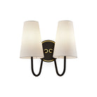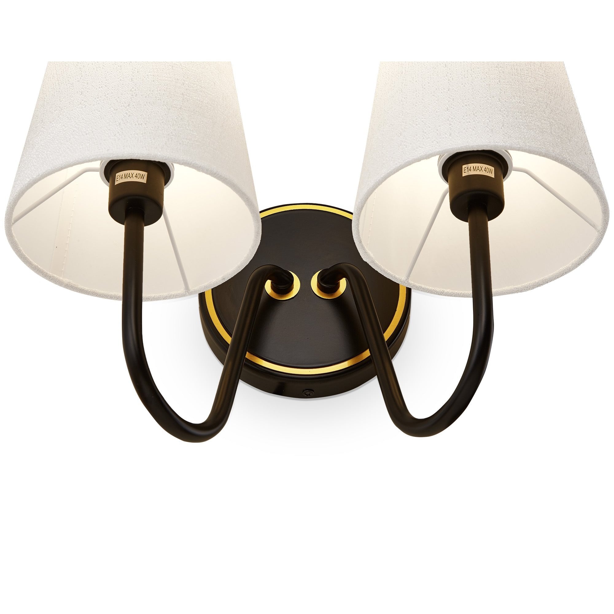 Gildan Wall Light Black & Brass Frame & White Linen Shades