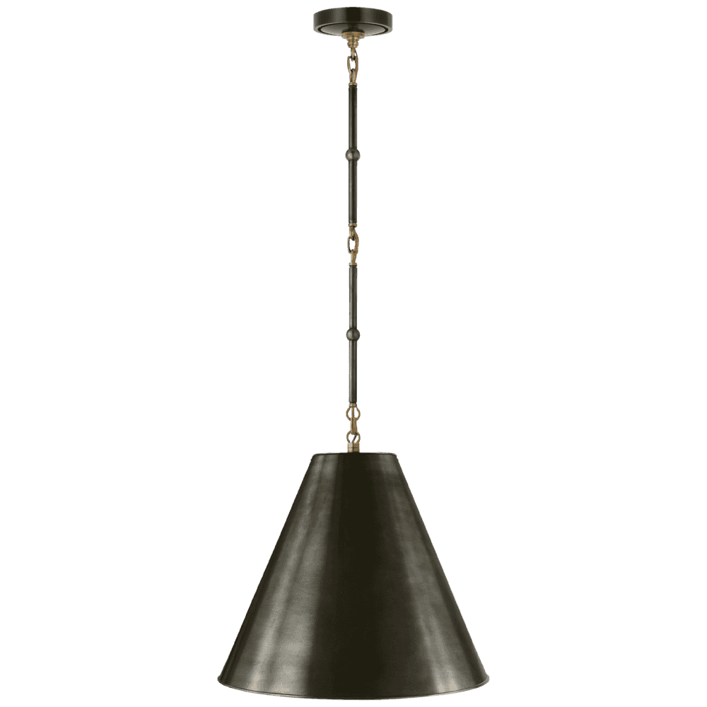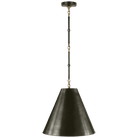Pendant Light with Hand-Rubbed Antique Brass Frame and Bronze Shade. The hand-rubbed antique brass finish gives a slightly aged, refined look, not overly shiny, but warm and sophisticated. The bronze shade adds depth and an element of contrast: the darker bronze pairs nicely with the warmer brass body, making it a statement piece.