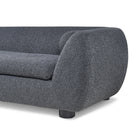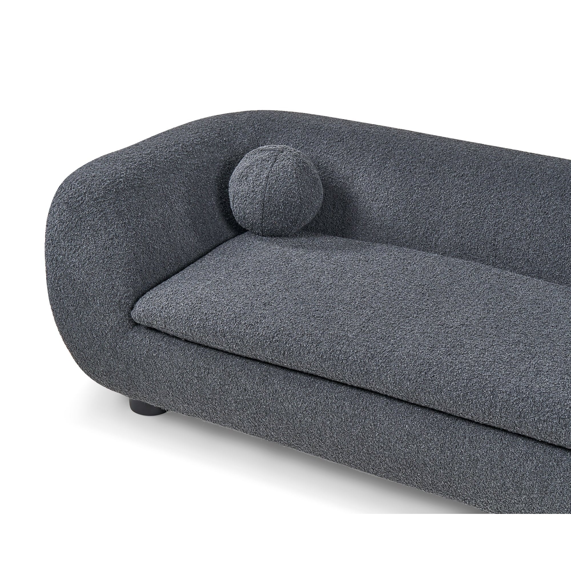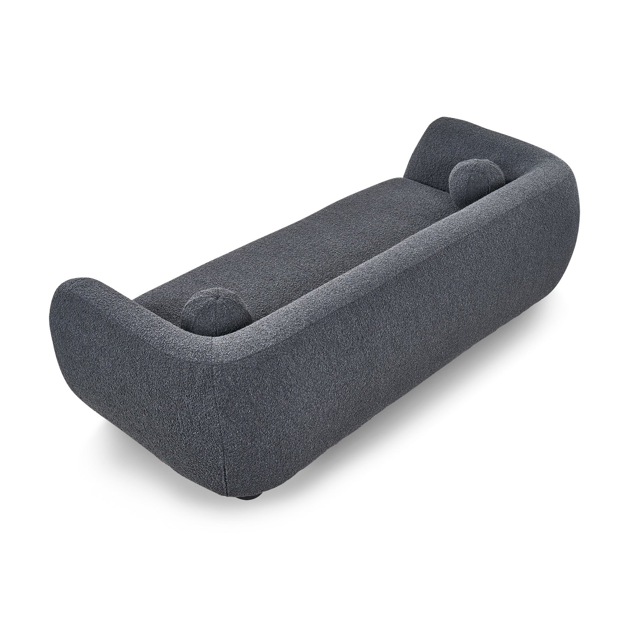 The Hudson Sofa in Beau Gaze boucle fabric brings playful charm and elegance to your space. Draped in rich dark grey fabric with a durable solid wood frame, it features cozy ball cushions for added comfort, making it the perfect spot for relaxation and socializing in your living area.