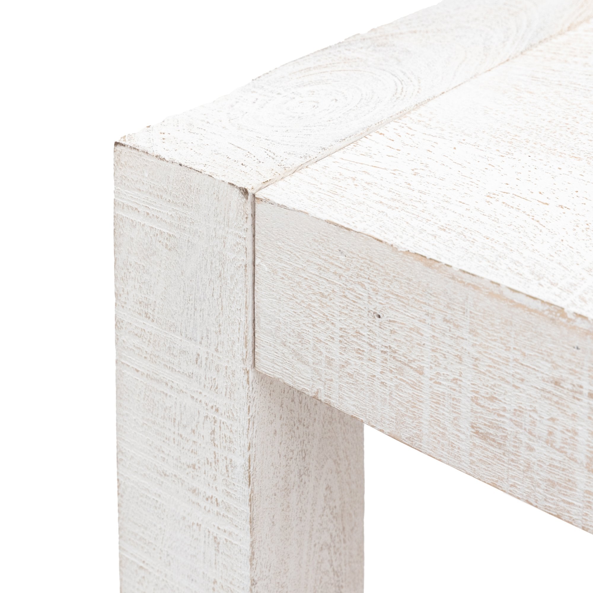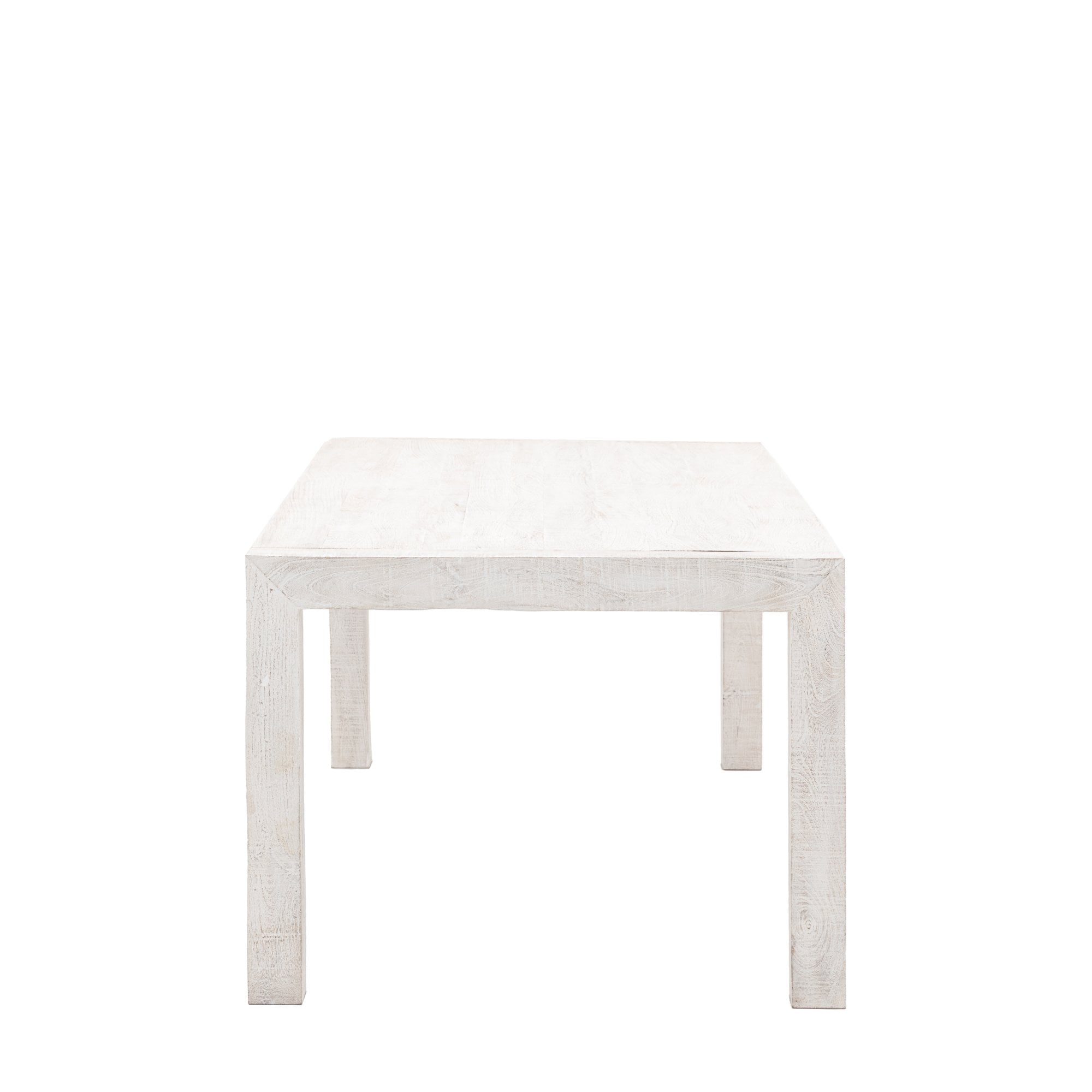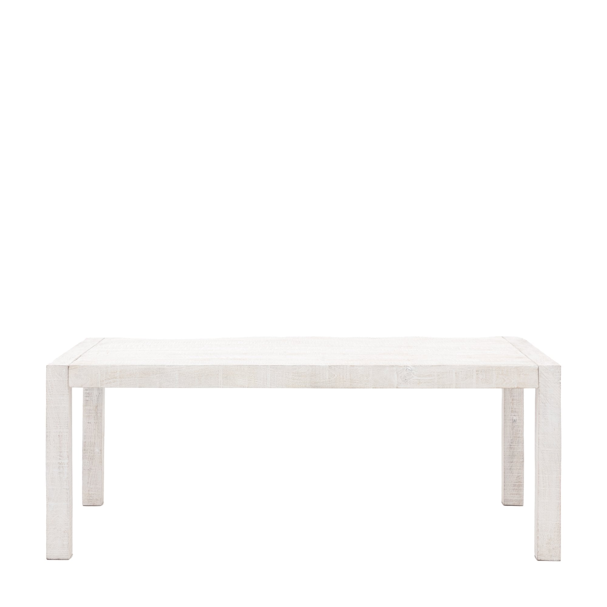 The dining table is a versatile and stylish piece that can be used in a variety of settings. Its minimalist design and distressed whitewash finish add a touch of rustic charm to any space. The solid mango wood construction ensures durability and longevity, making it a perfect choice for everyday dining.
