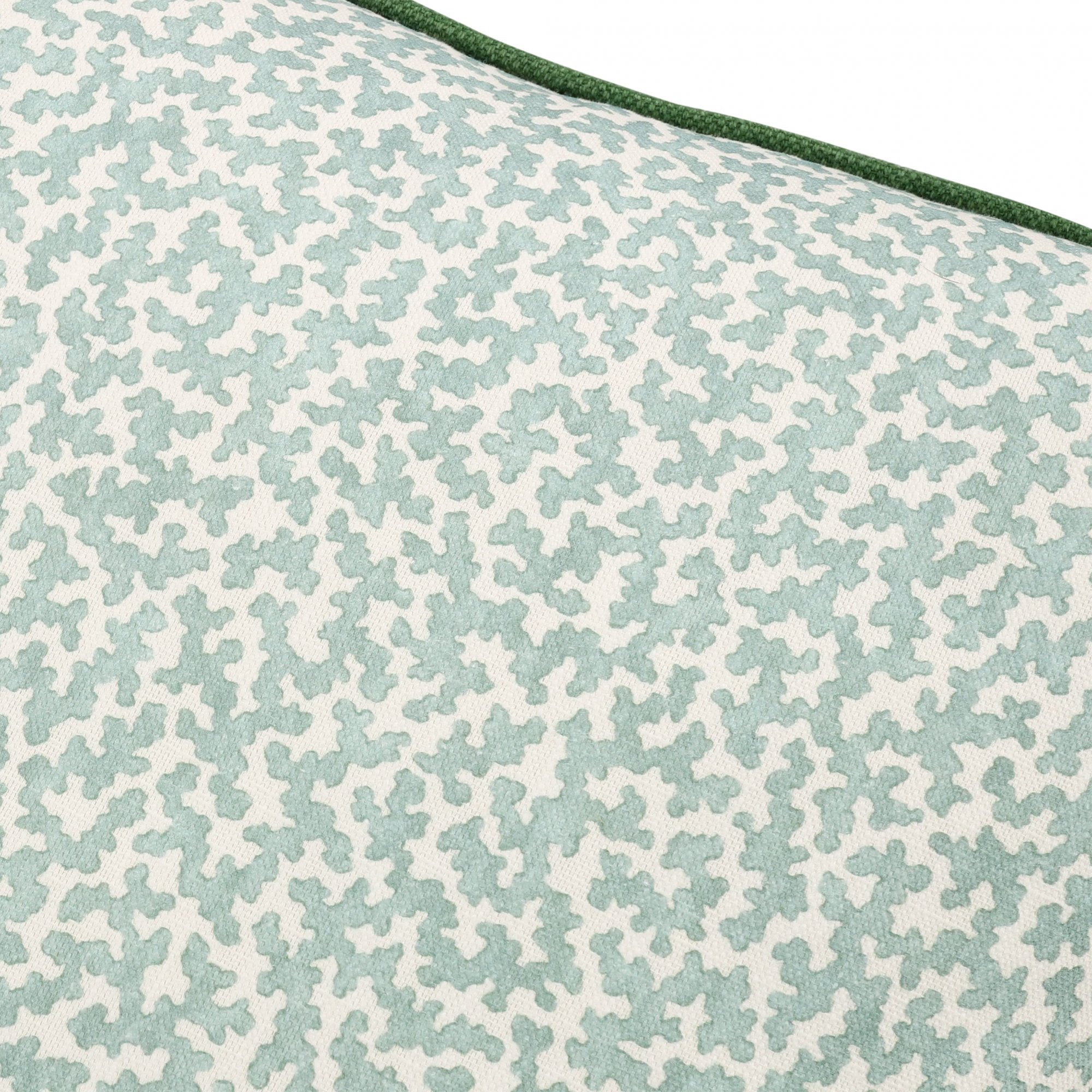 Drawing inspiration from the delicate forms of coral, this printed organic and recycled cotton linen blend makes a beautiful cushion with contrasting yet complementary piping.