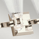 Inspired by vintage glass decanters found in Paris flea markets. The Kayva series, with in-built dimmable LED technology, radiates French elegance by combining sleek lines with clear faceted glass and a Polished Nickel finish for an updated traditional style. Kayva is IP44 rated and can be used in bathrooms.