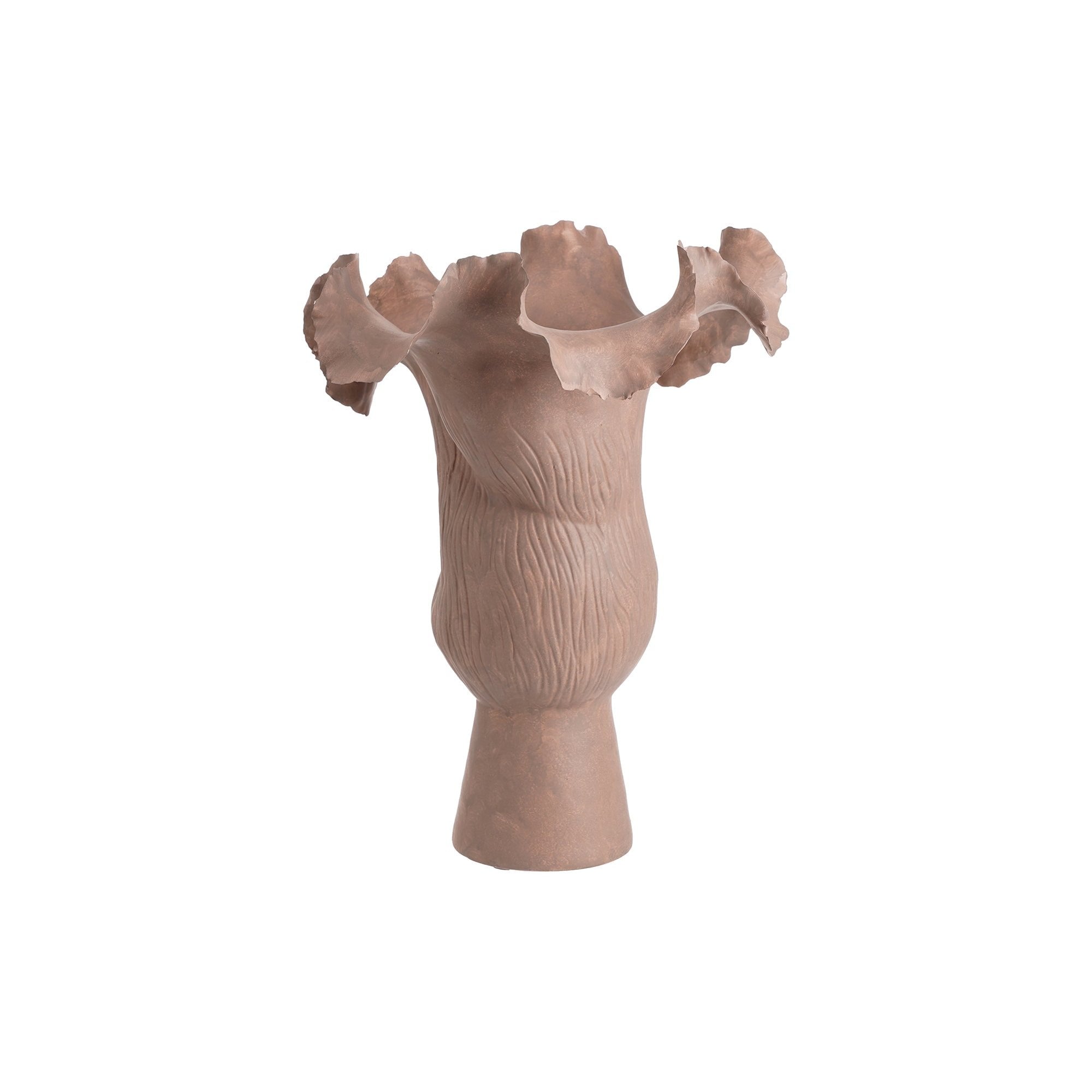 The Kiana Ceramic Vase embodies refined elegance, drawing attention with its intricate design and delicate allure. Crafted from Sienna Brown ceramic, this masterpiece features beautifully intertwined creases that create a unique organic symmetry. A feathered top unfurls gracefully, making it the perfect sculptural accent for your home.
