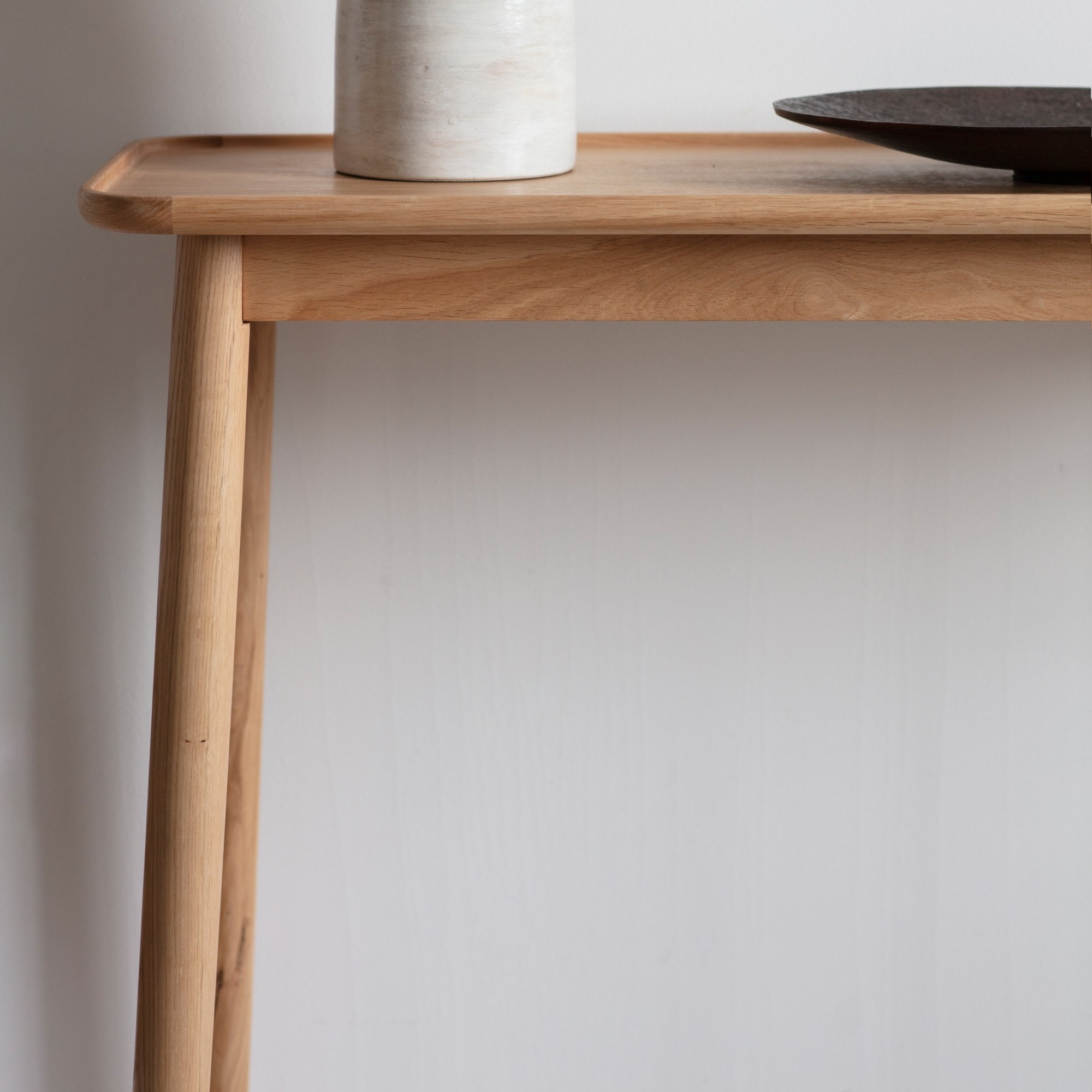 A living, dining and bedroom collection made using solid European Oak in a natural dry sheen level finish, with the addition of a mellow matte grey option across a selection of occasional items. The range features bedroom compatible lines such as an open robe, side table with drawer as well as a dressing table and mirror which features a smart easel design with Oak peg fixing.