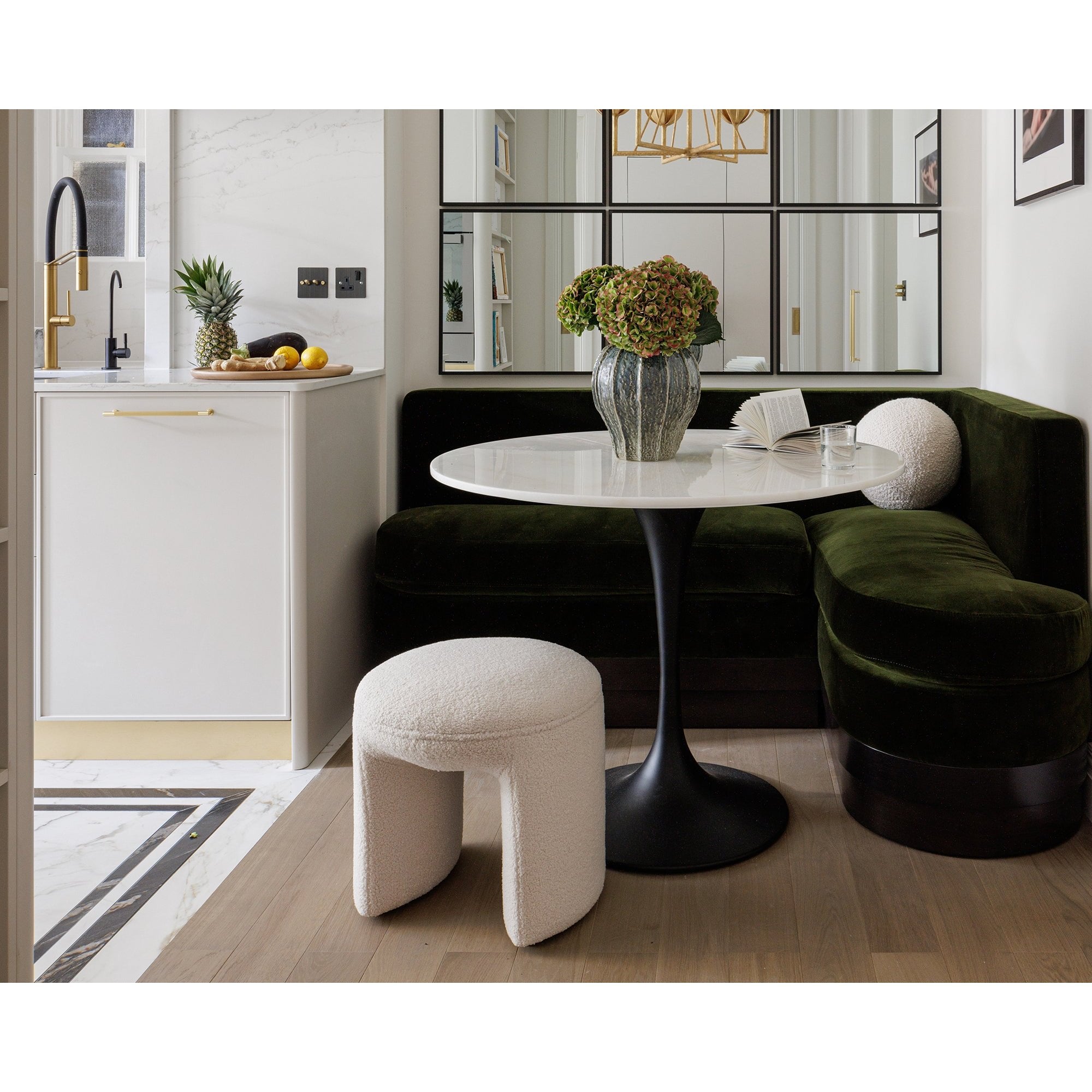 Discover the playful elegance of the Kramer Stool in Alpaca Sand, designed for enduring comfort. Its circular seat and finely tailored legs offer a modern touch, perfect for use as a window seat or end-of-bed bench. Elevate your interior style with this versatile, chic piece.