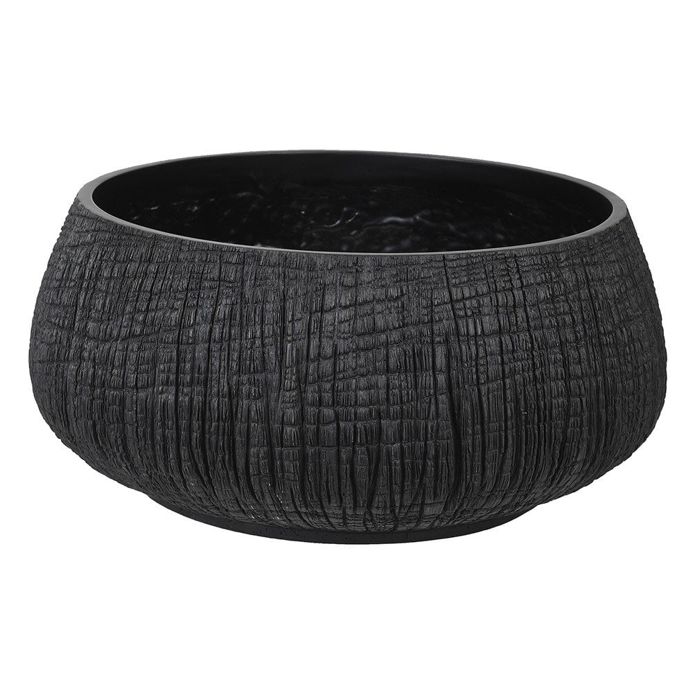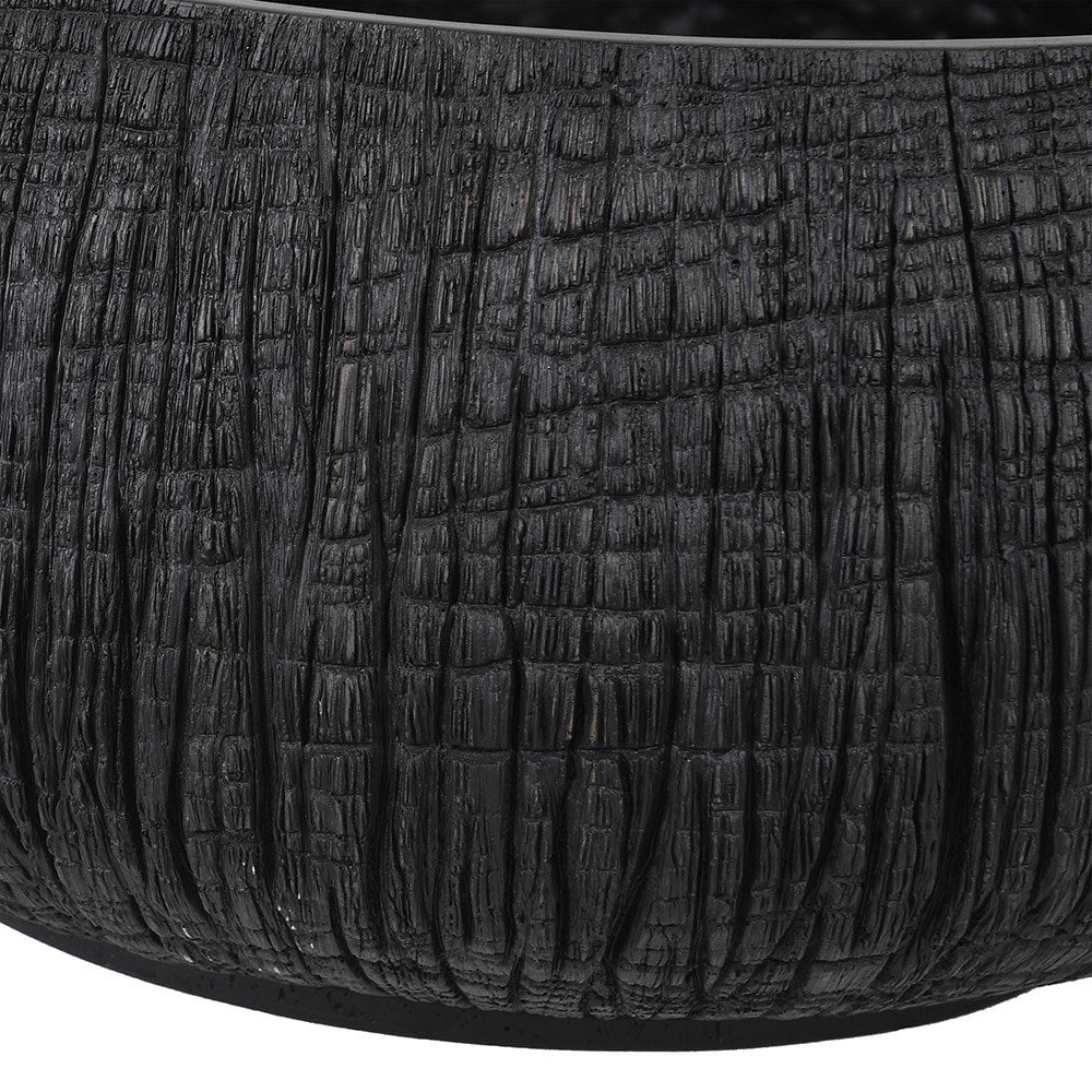 Large Low Black Yakisugi Textured Pot