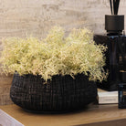 The large, low black yakisugi textured pot presents a striking fusion of traditional Japanese craftsmanship and contemporary design. Its compact size makes it perfect for small spaces, while its charred wood appearance, achieved through the yakisugi technique, adds a sense of depth and texture