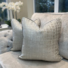 Our luxurious textured patterned Adriana Cushion in Fawn is made from designer fabric and has a textured fabric with tones of taupe, champagne and sand and is piped in complimenting Celine Fawn fabric perfect for warm neutral themes with hints of taupe. The Adriana cushion has a slight metallic textured pattern in a neutral taupe shade on a lighter back fabric.