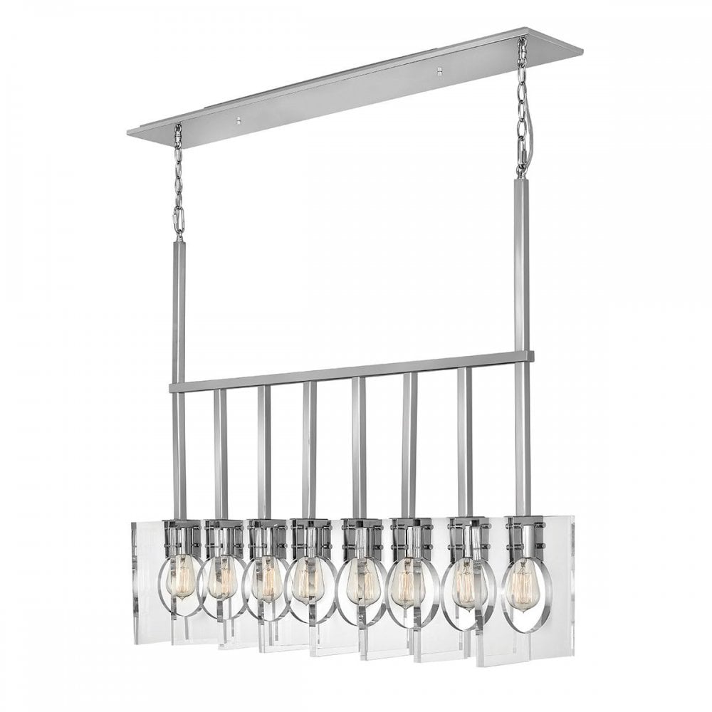 Ludlow pendant light cleverly blends a penchant for industrial features with inspiration drawn from Palladian architecture. Designed around the light source, Ludlow plays with the simple geometry of circles and squares for an extra-stylish composition. Finished in Polished Nickel.