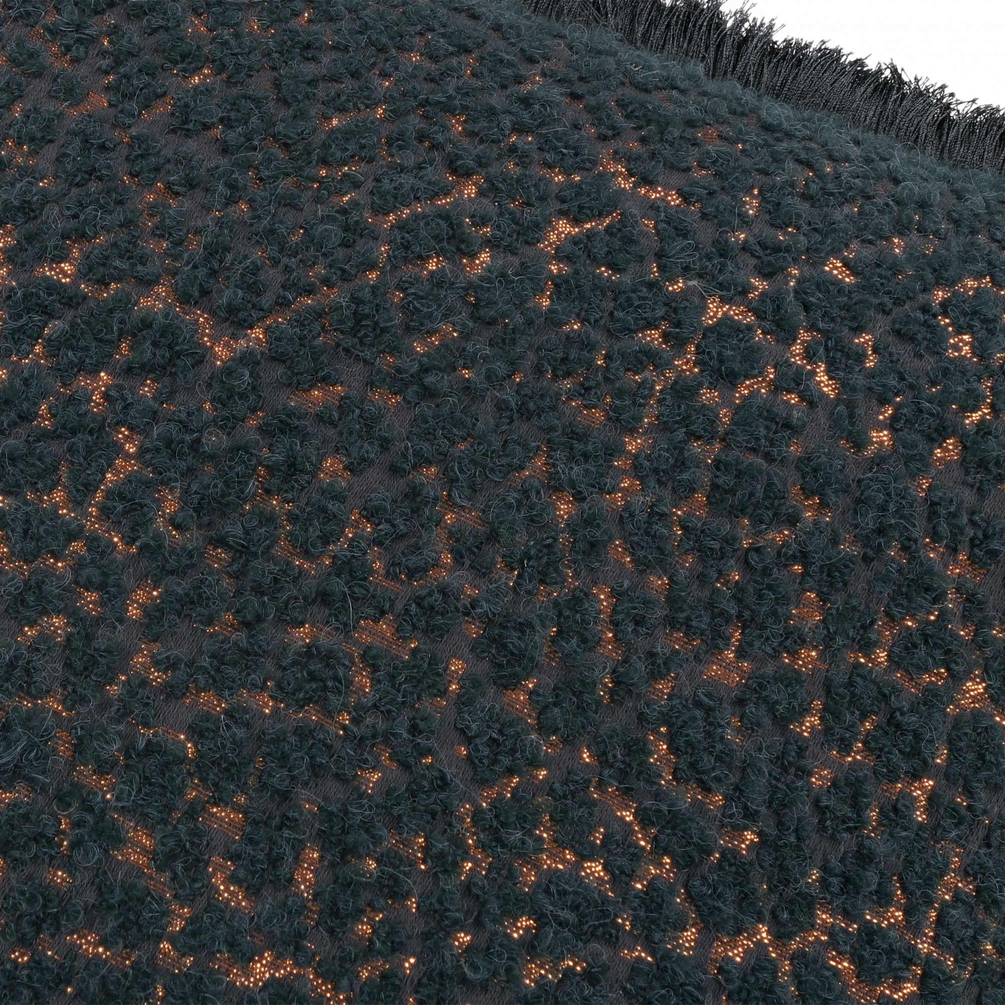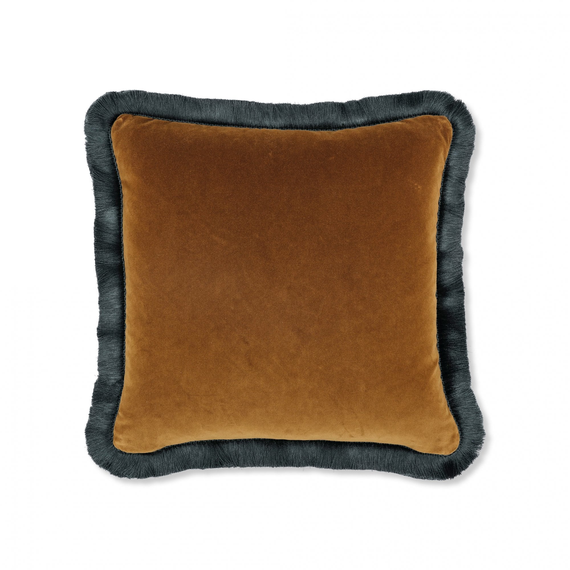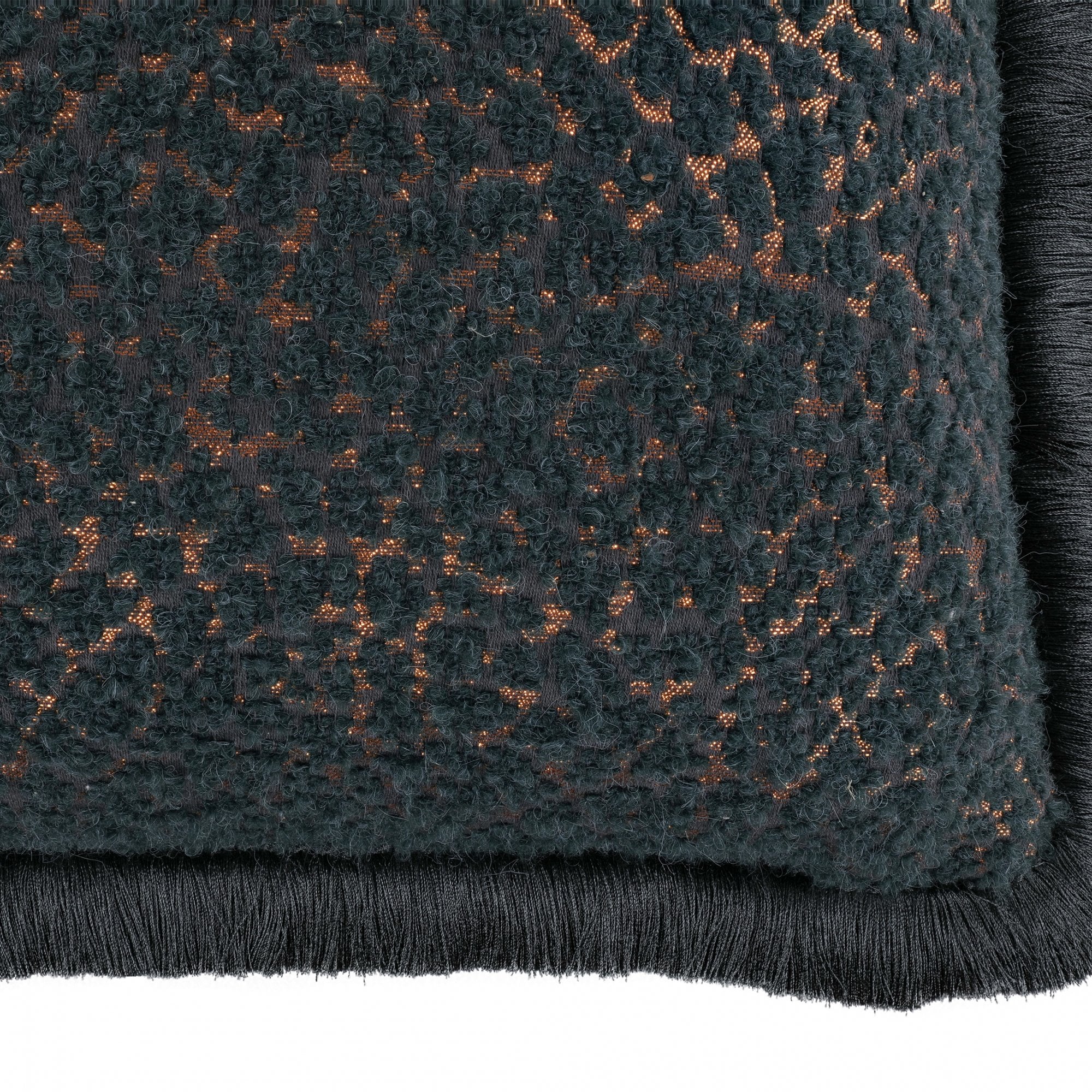 An incredibly soft, textural wool bouclé cushion with a dash of leopard vivacity and a hint of sparkly metallic, embellished by a beautiful, sumptuous cut ruche fringe.