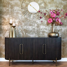 Elevate your living space with the Luxor 4 Door Sideboard from Richmond Interiors - a stunning fusion of modern elegance and bold sophistication. Inspired by Art Deco opulence, this sideboard boasts a geometric gold inlay on a rich black finish, creating a show-stopping centerpiece that’s as stylish as it is functional.