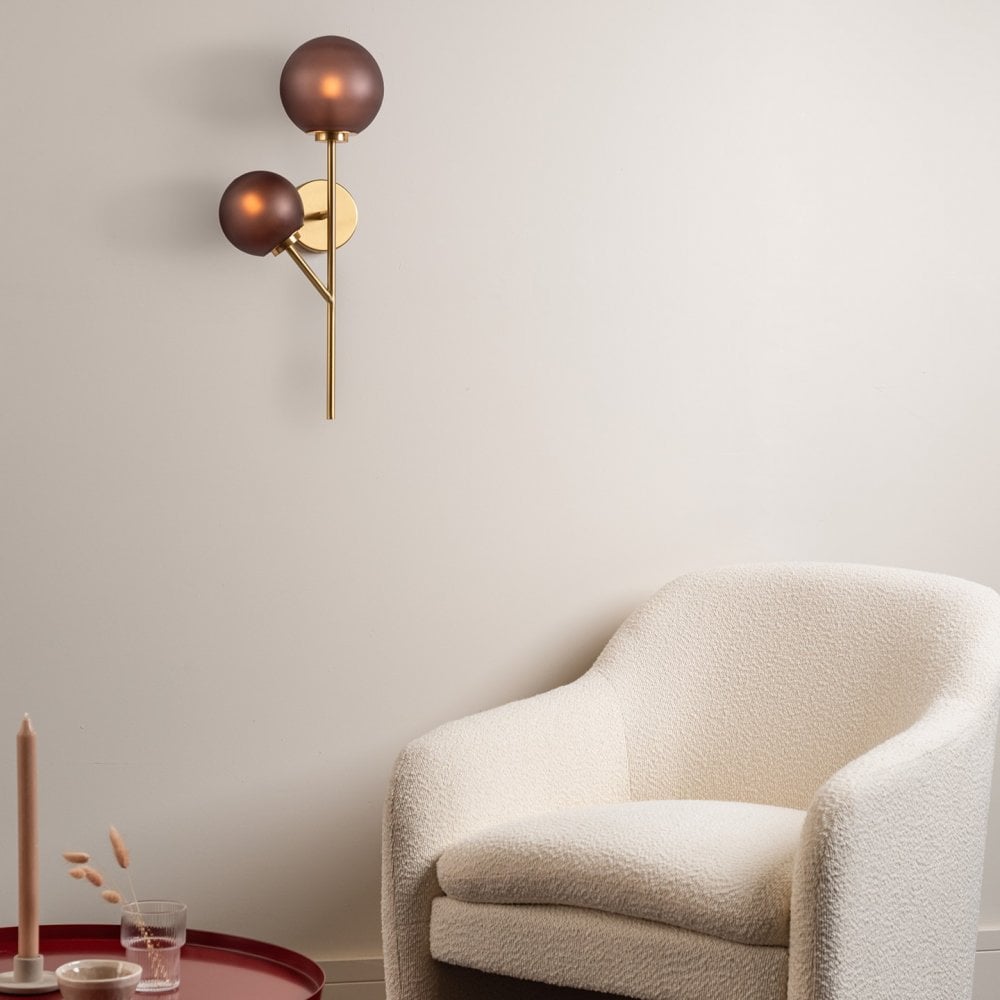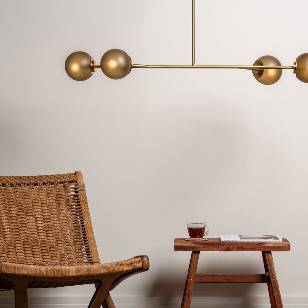 Create a warm and inviting glow with the Marnie linear pendant. The rich frosted glass globes paired with satin brass metalwork create a cosy atmosphere that's perfect for a dining room or above a kitchen island. Available in Champagne, Olive and Merlot.