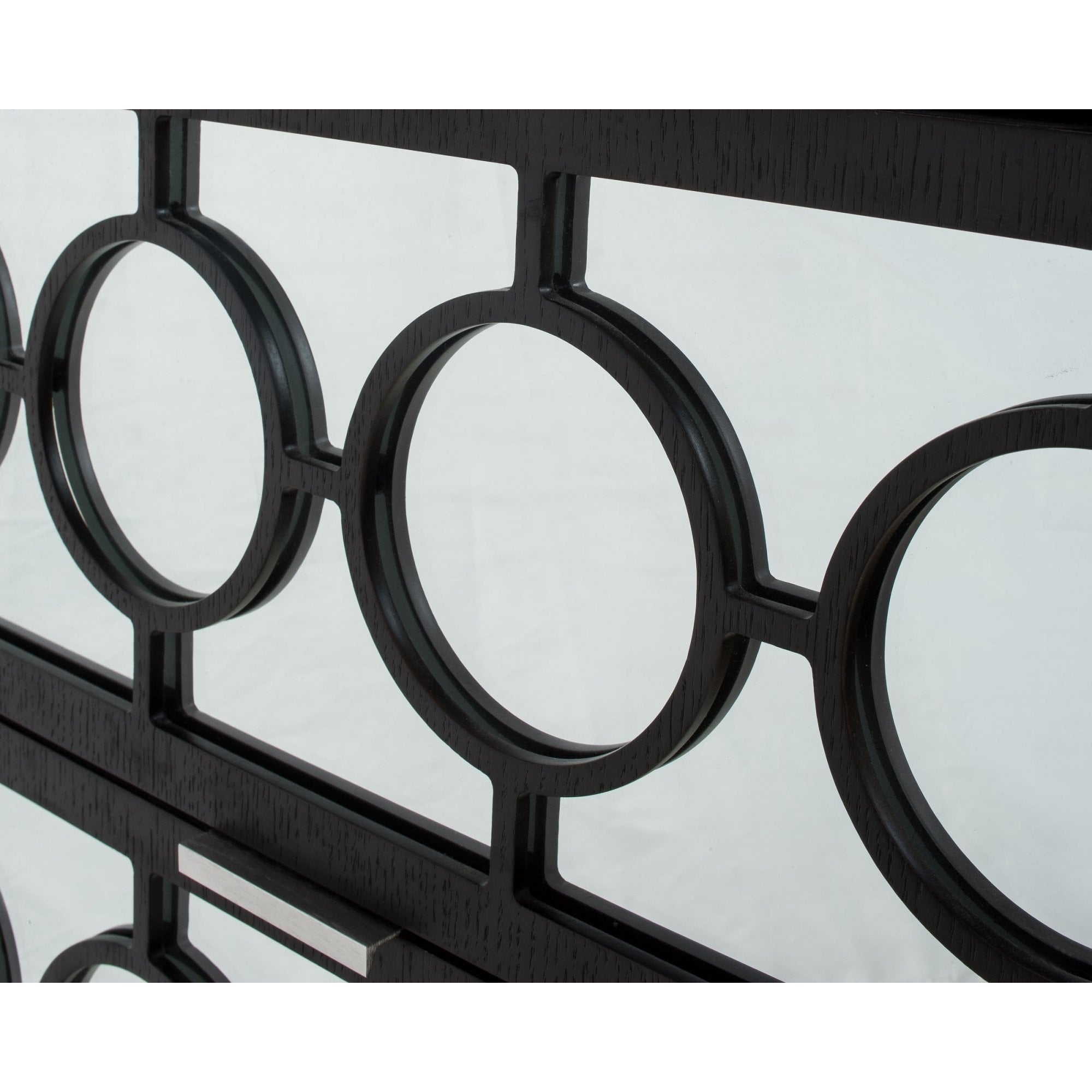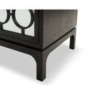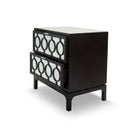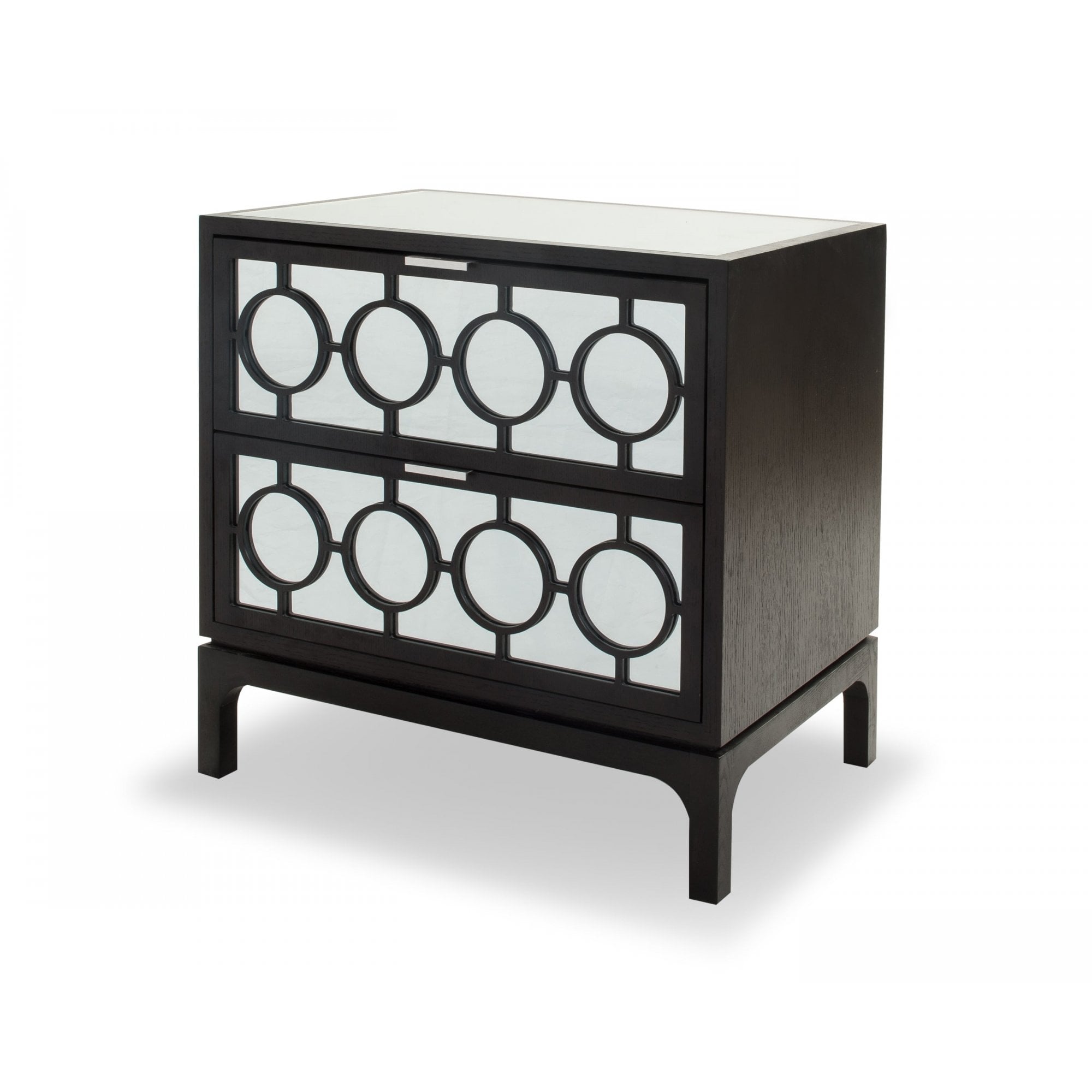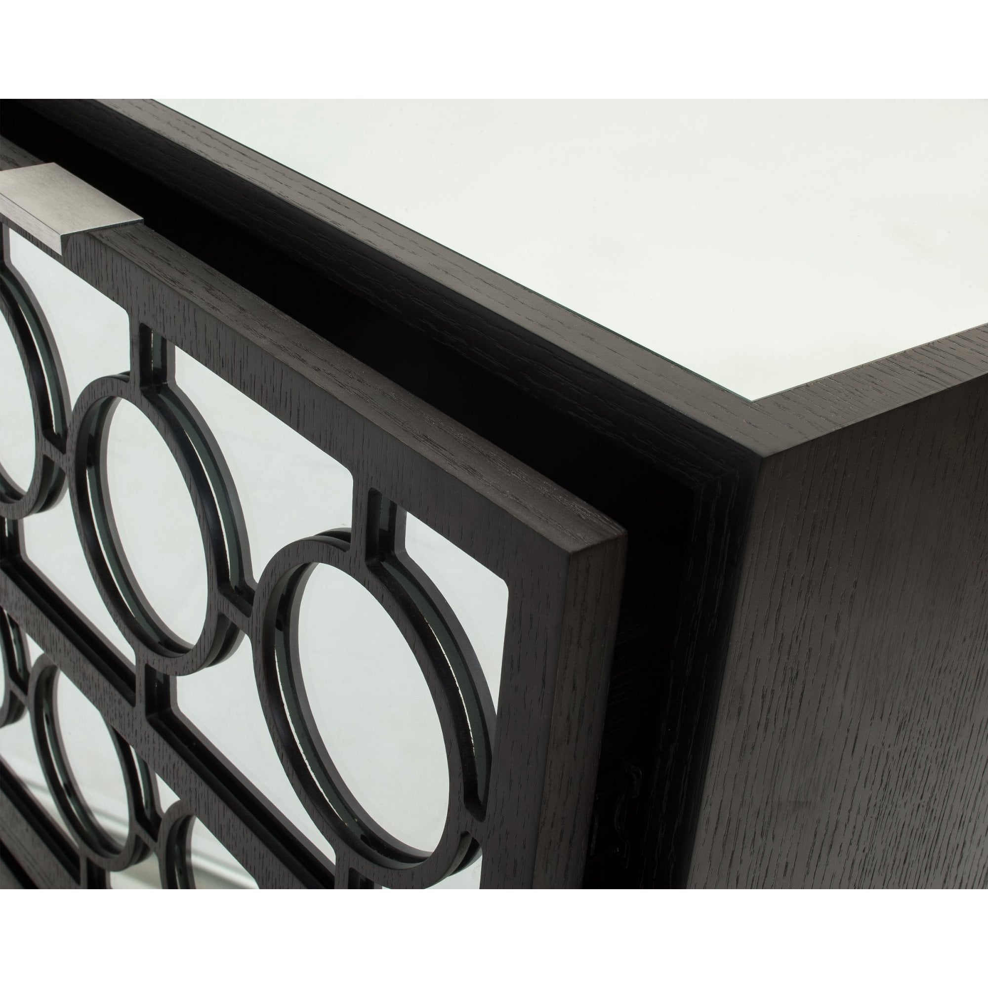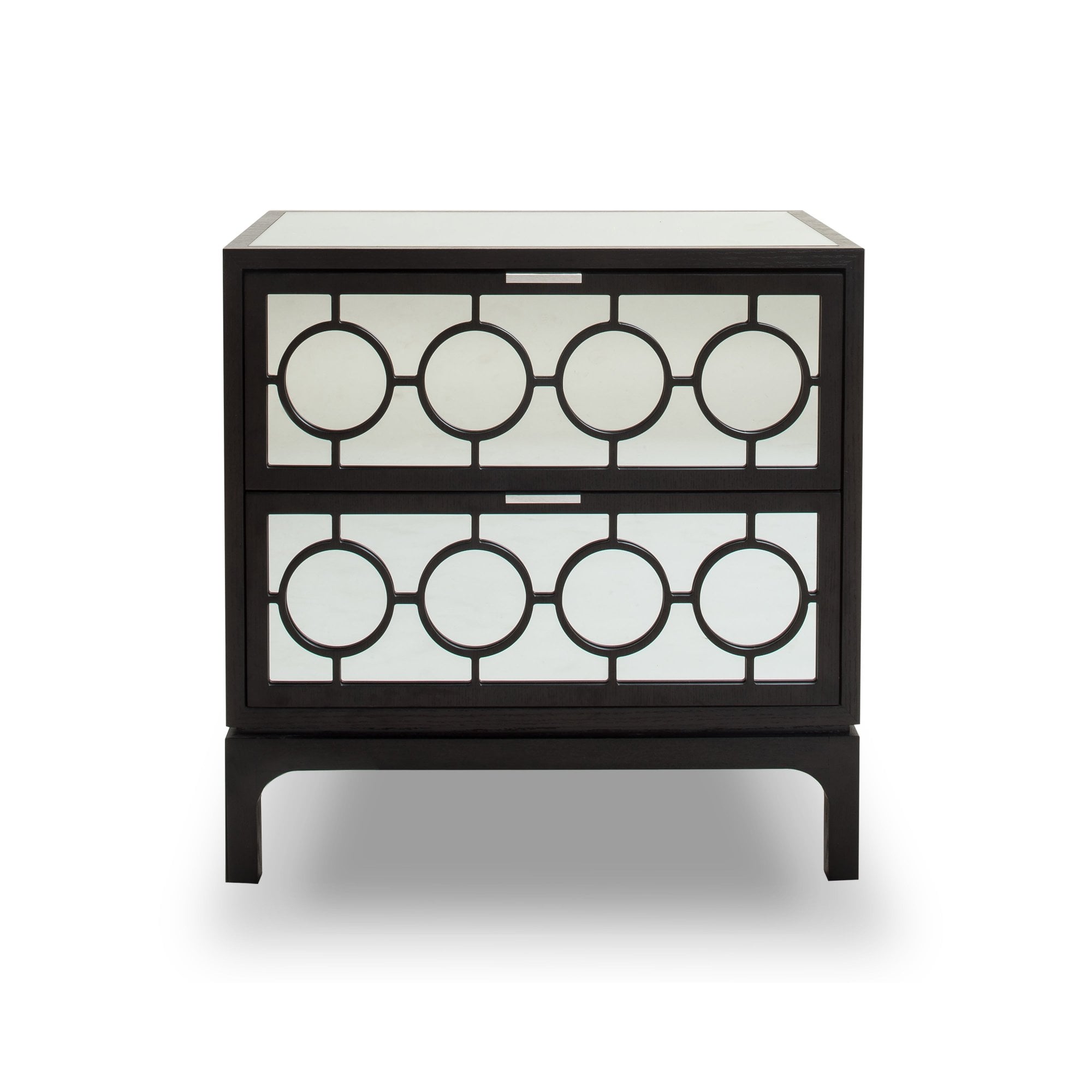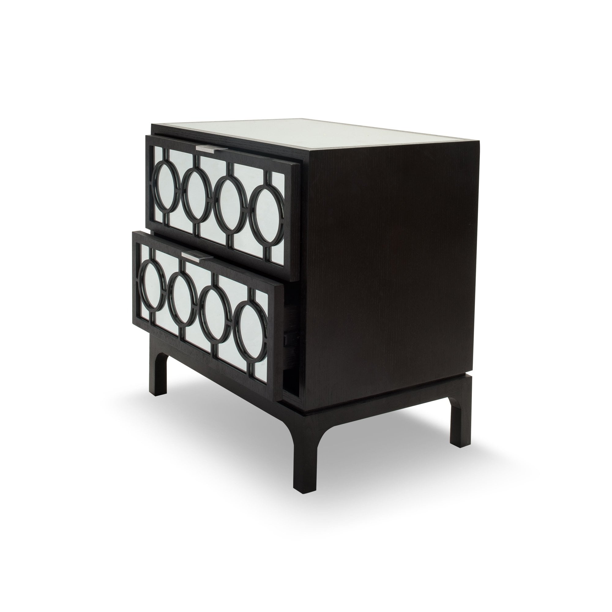Transform your bedroom with the Marriott Bedside Table, where classic Deco inspiration meets contemporary design. Featuring a rich oak veneer and solid wood legs in Wenge Oak, this elegant table boasts mirrored drawer fronts adorned with intricate circular fretwork. With soft-closing drawers, it combines style and functionality seamlessly, making it a timeless addition to any room.