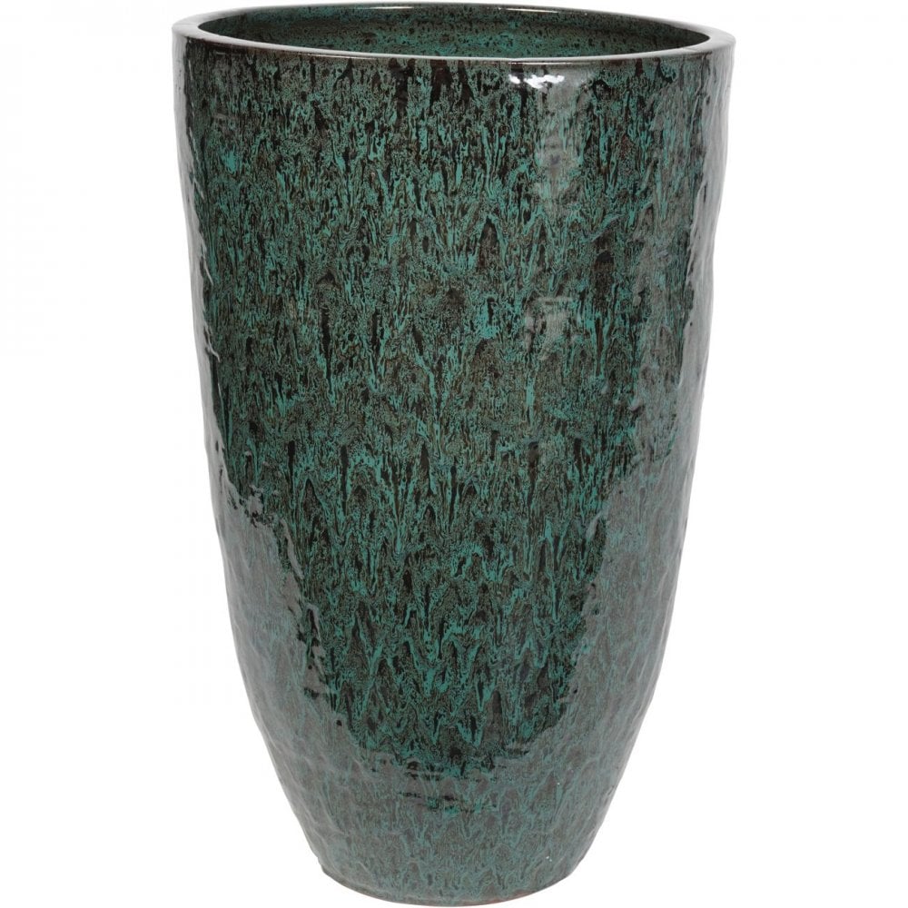 Mederno Reactive Glaze Ceramic Tall Planter Green