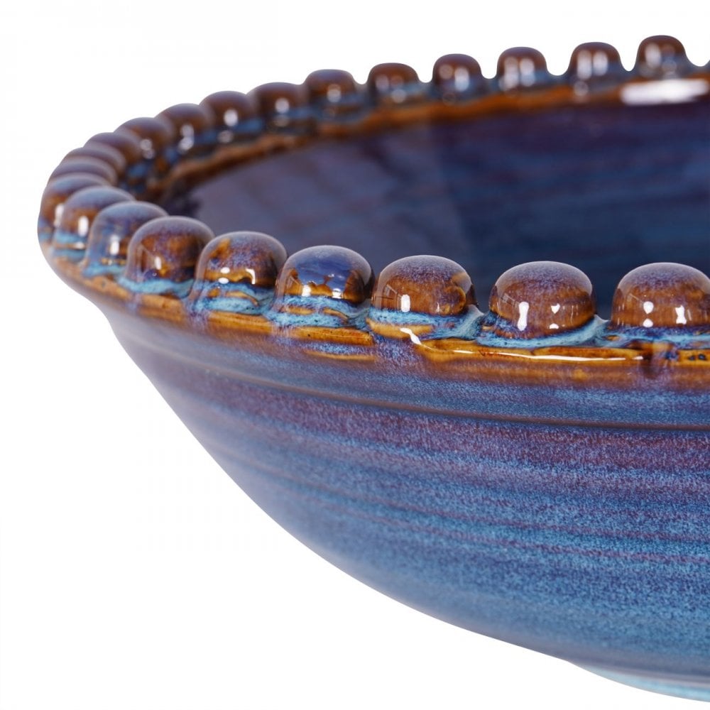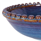 Introducing our Mediterranean Blue Reactive Glaze Ceramic Bowl, showcasing a stunning blue hue with delicate round ceramic beading. The enchanting reactive glazing infuses the beads with a shimmering blend of blue and brown tones, creating an air of understated luxury.