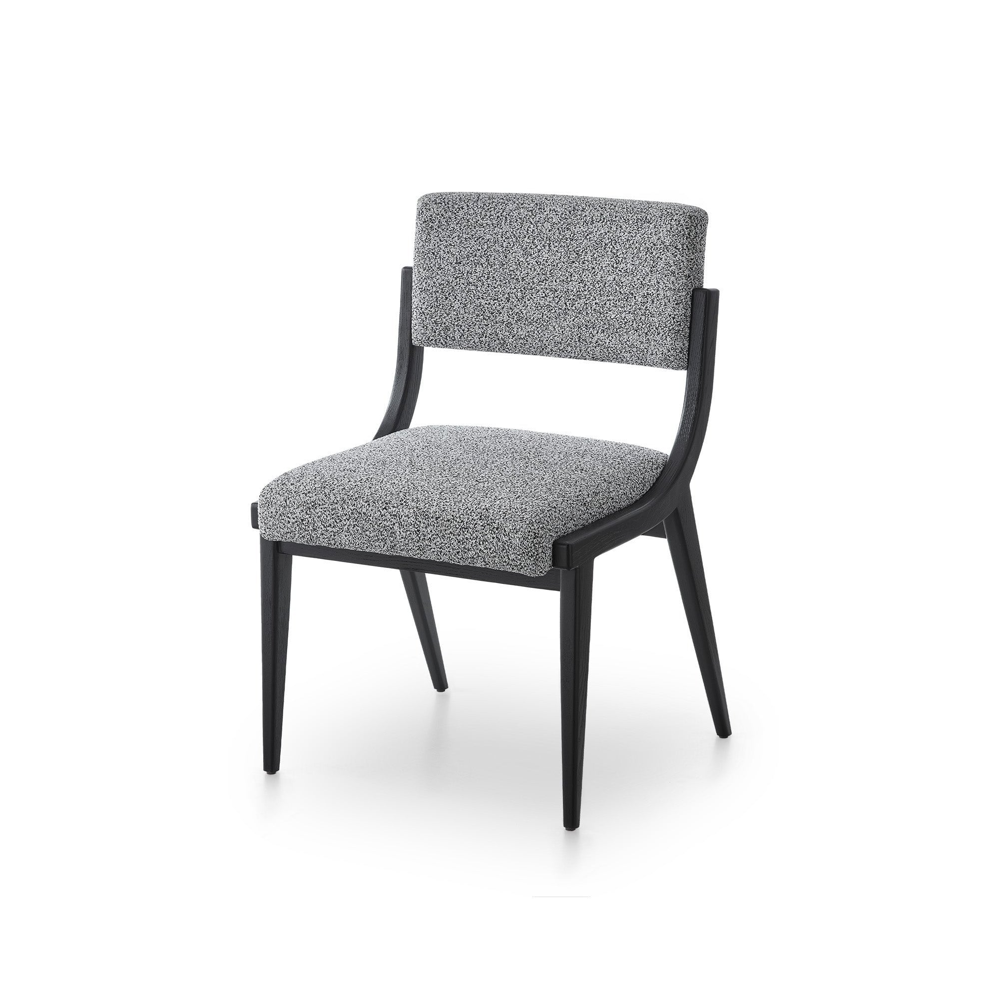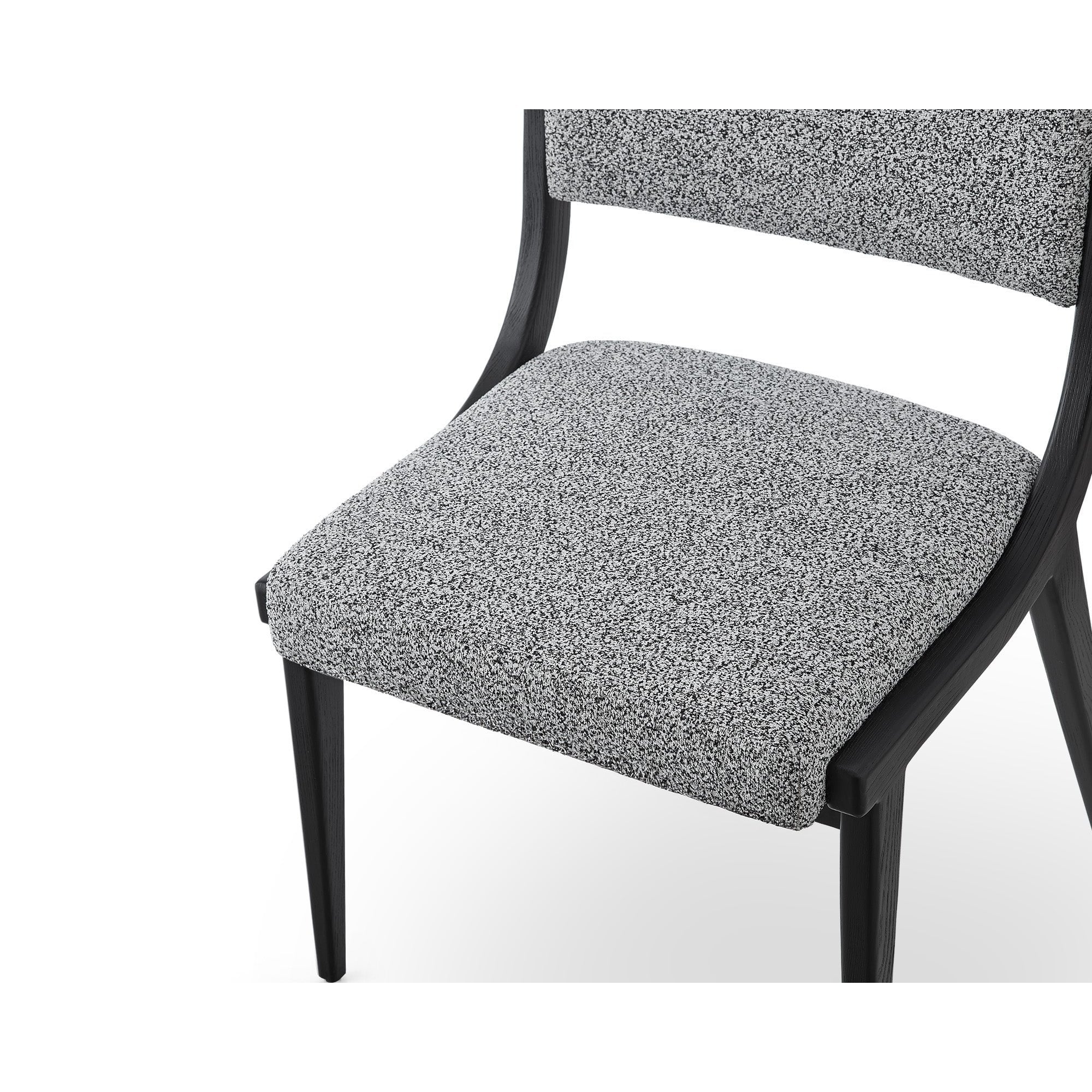 Elevate your dining experience with the Miami Dining Chair, a stunning fusion of classic design and contemporary flair. Upholstered in charming Speckle Grey, it features a sleek matt black solid wood frame and legs. With its playful pattern and inviting softness, this chair is perfect for both residential and hospitality spaces, ensuring comfort and style.