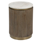 Maigue Brown Textured Wood Side Table with Marble Top