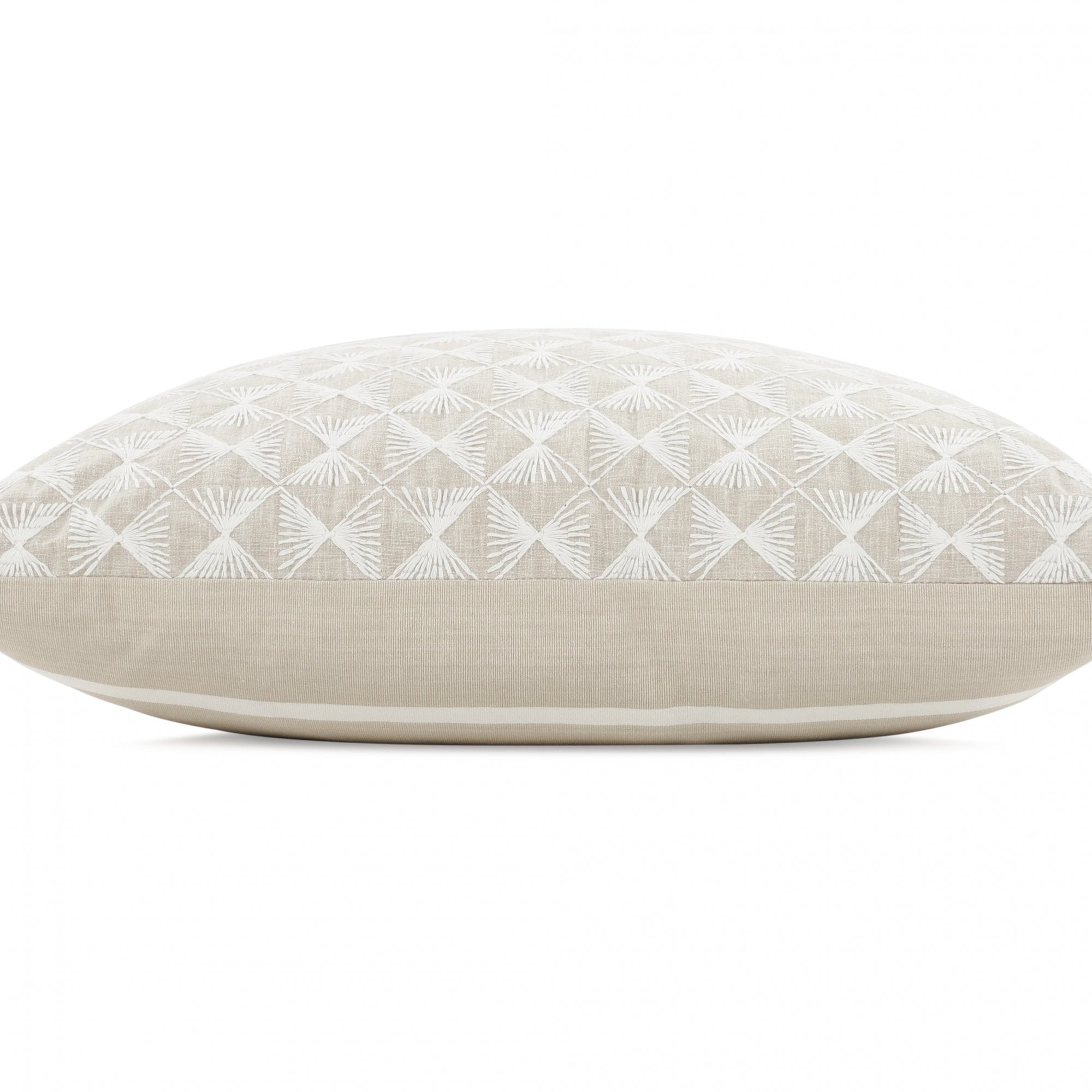 Wonderfully versatile, an all-over, small-scale embroidery is paired with a modern stripe to create a playful readymade cushion.
