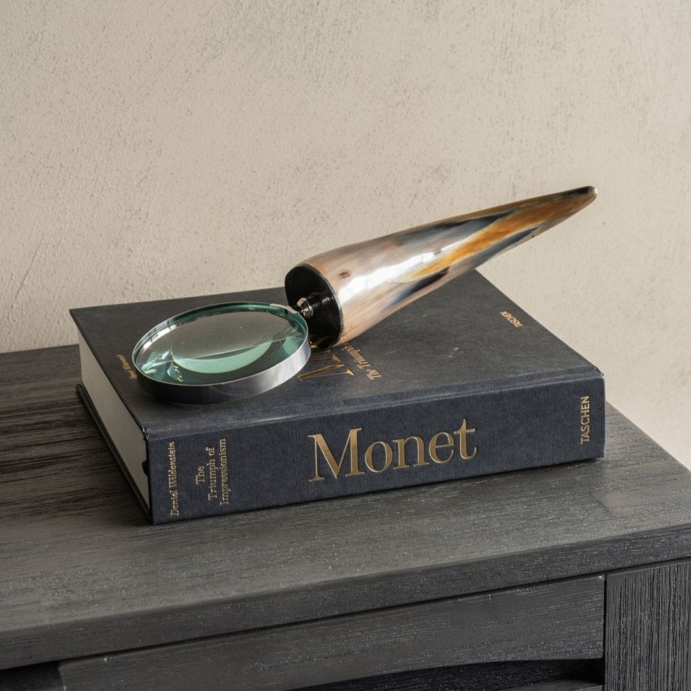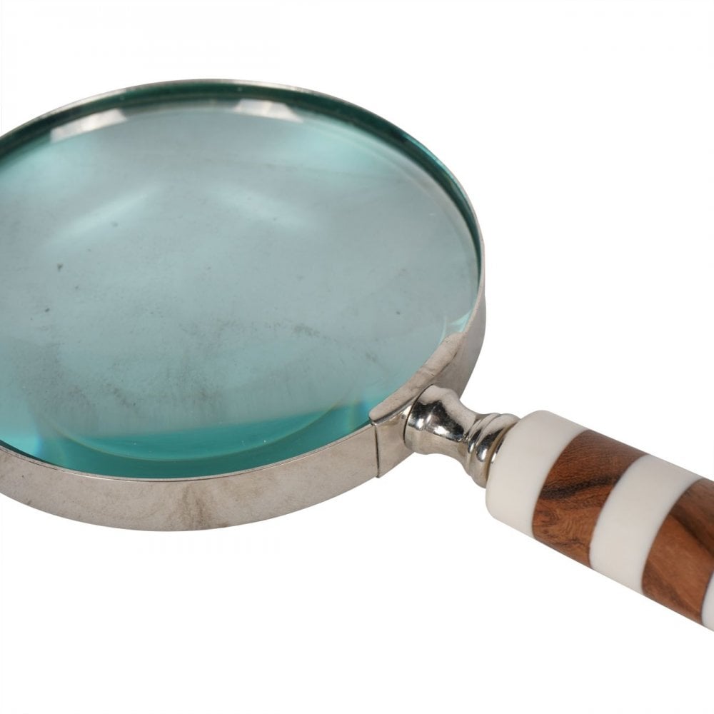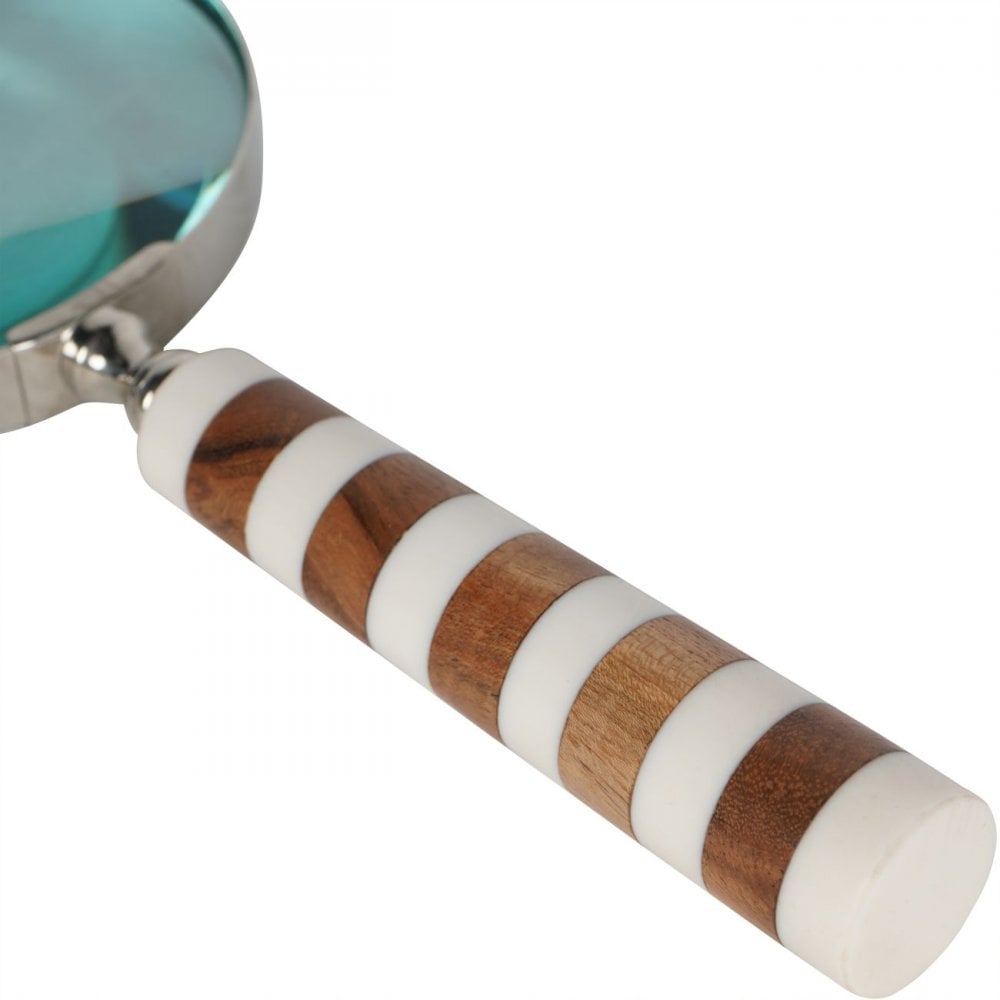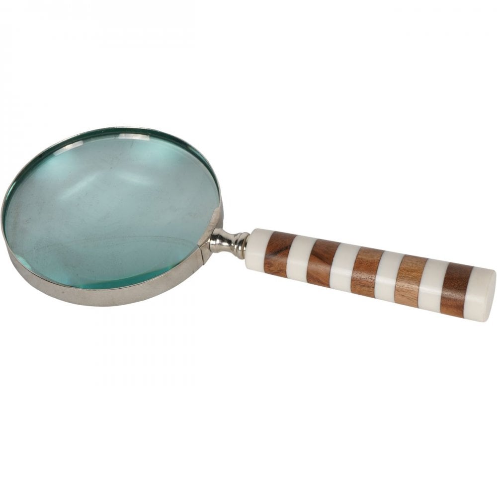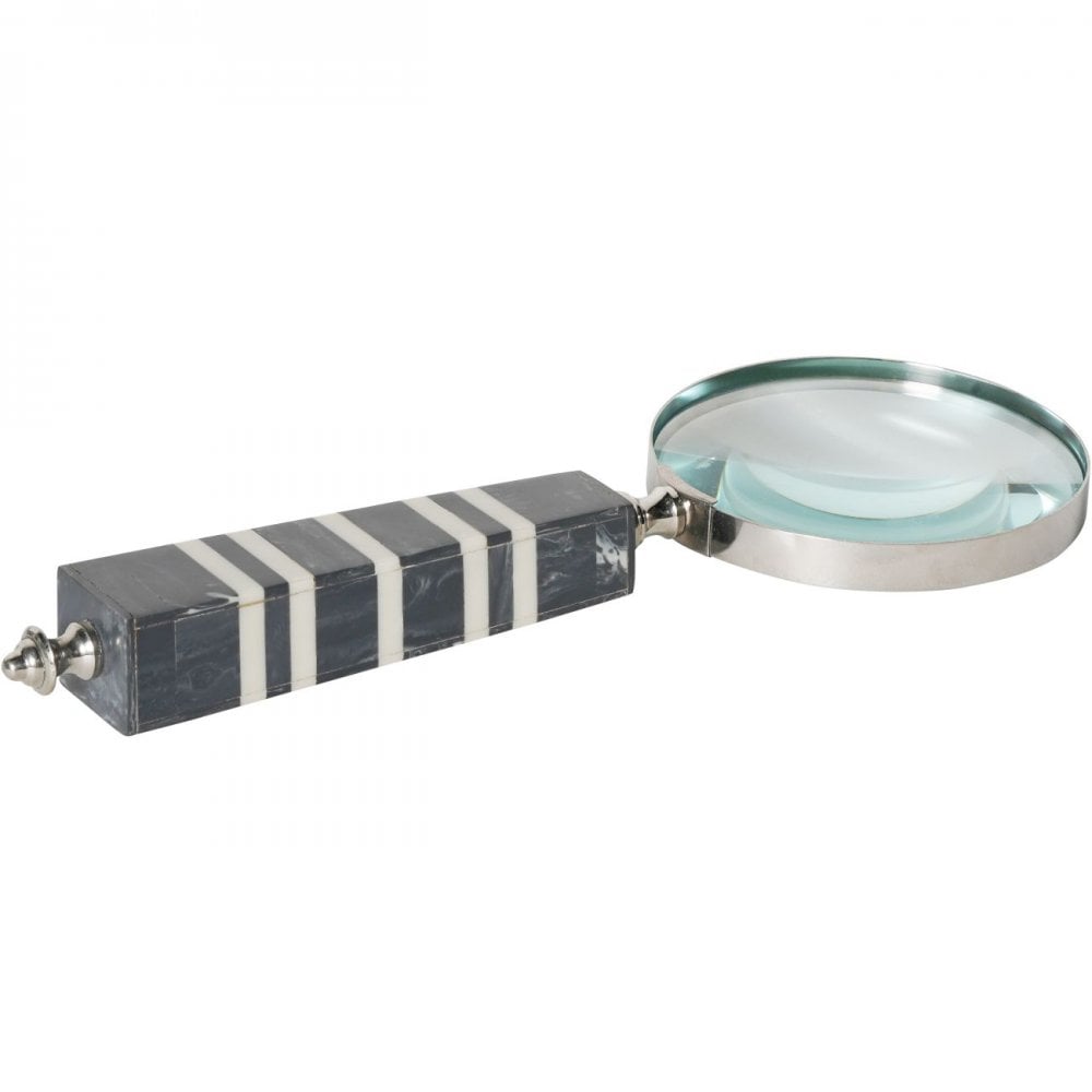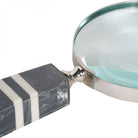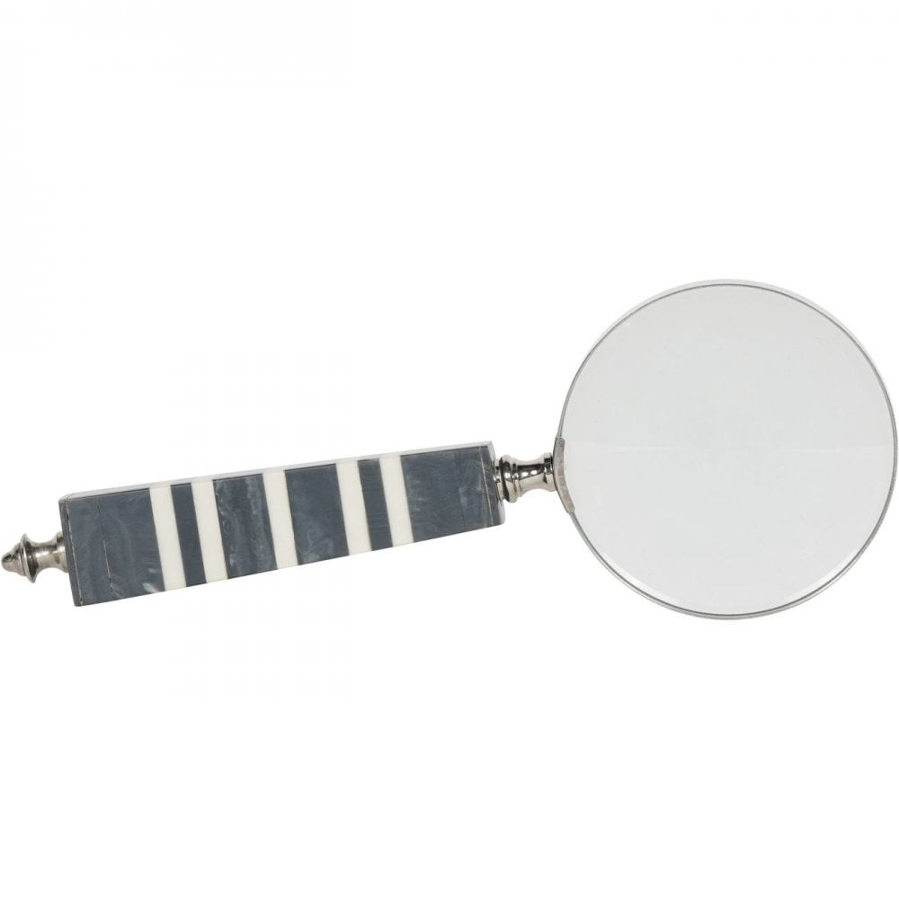 Magifying glass with polished chrome finish and resin stripe detailed handle. Part of a collection of 3 coordinating items including storage box, coasters and magnifying glass. An ideal gift together or seperately.