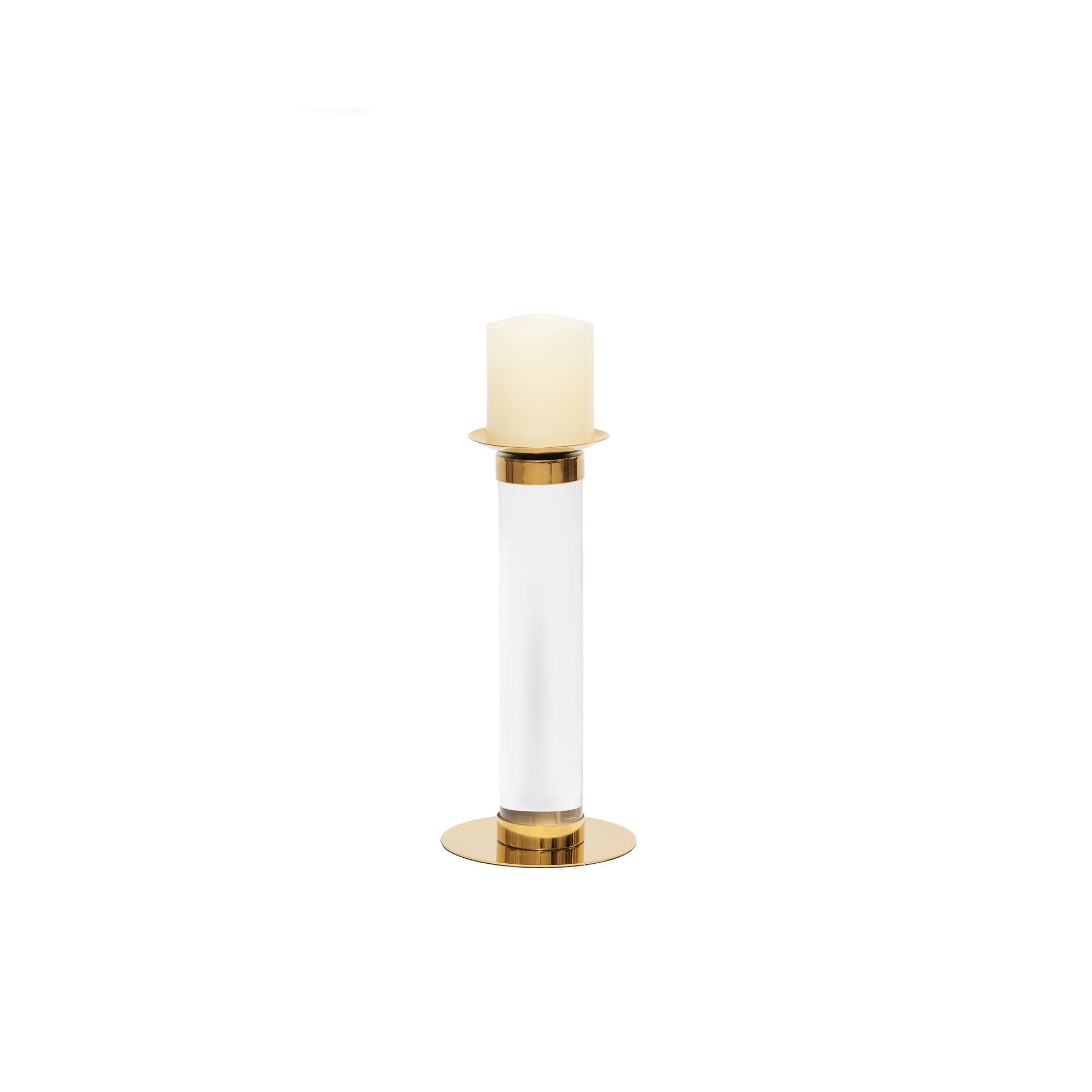 The Small Pillar Candle Holder is an exquisite addition to any decor with its polished brass finish and unique design. Perfectly sized for tabletops or shelves, it creates a warm, inviting atmosphere, making it an excellent choice for both residential and hospitality environments.
