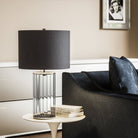 Reno Table Lamp Smoked Glass Base & Polished Nickel Grey Faux Silk Shade