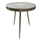 A beautiful tripod table. Sleek distressed finish with a sunburst design on a mirrored top. Ideal for any room in the home.