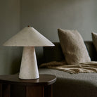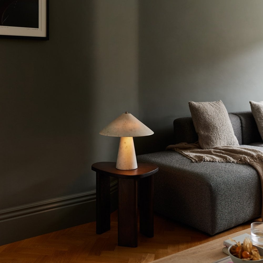 Crafted from solid white Calacatta marble, the Ruben table lamp is an elegant way to introduce timeless luxury into your home. The wide and shallow shade sits elegantly on top of a tall, conical base, creating a soothing silhouette that will elevate any interior setting. A beautifully simple object by day that transforms into a mesmerising light source at night.