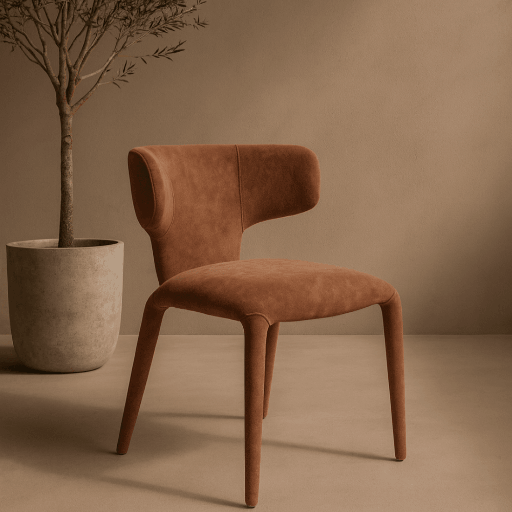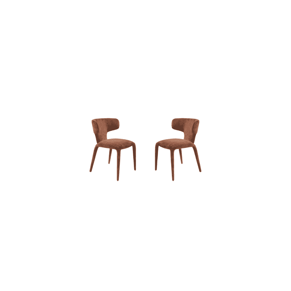 The Sahara Dining Chair in Rust brings a touch of warmth and modern sophistication to any dining space. Upholstered in a soft, textured fabric, the rich rust tone introduces depth and character while blending seamlessly with both neutral palettes and bold interiors. A gently curved backrest offers comfort and support, while the sleek silhouette and refined detailing ensure timeless appeal. Whether styled around a contemporary dining table or used as accent seating, this pair combines everyday functionality with an elevated, design-led finish.