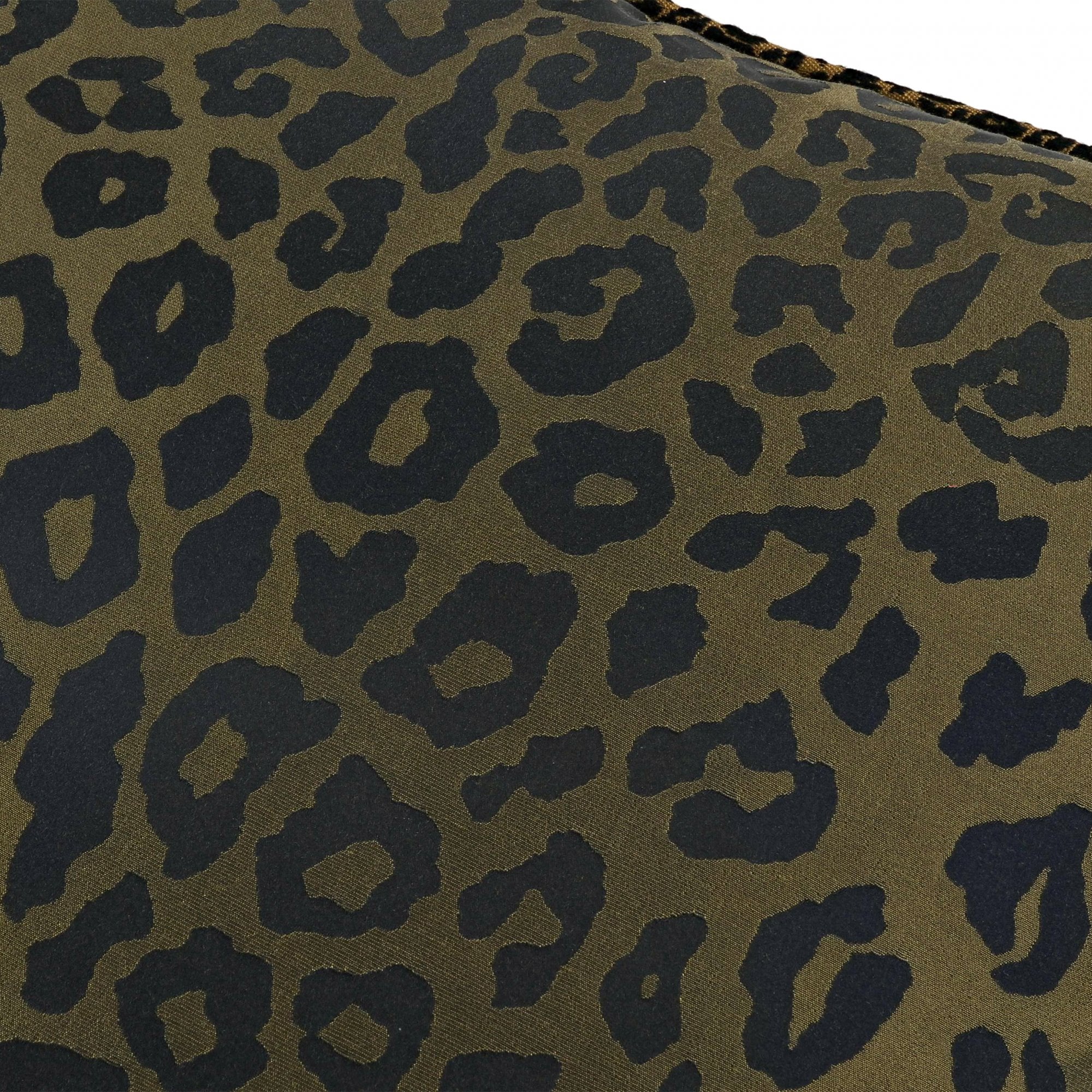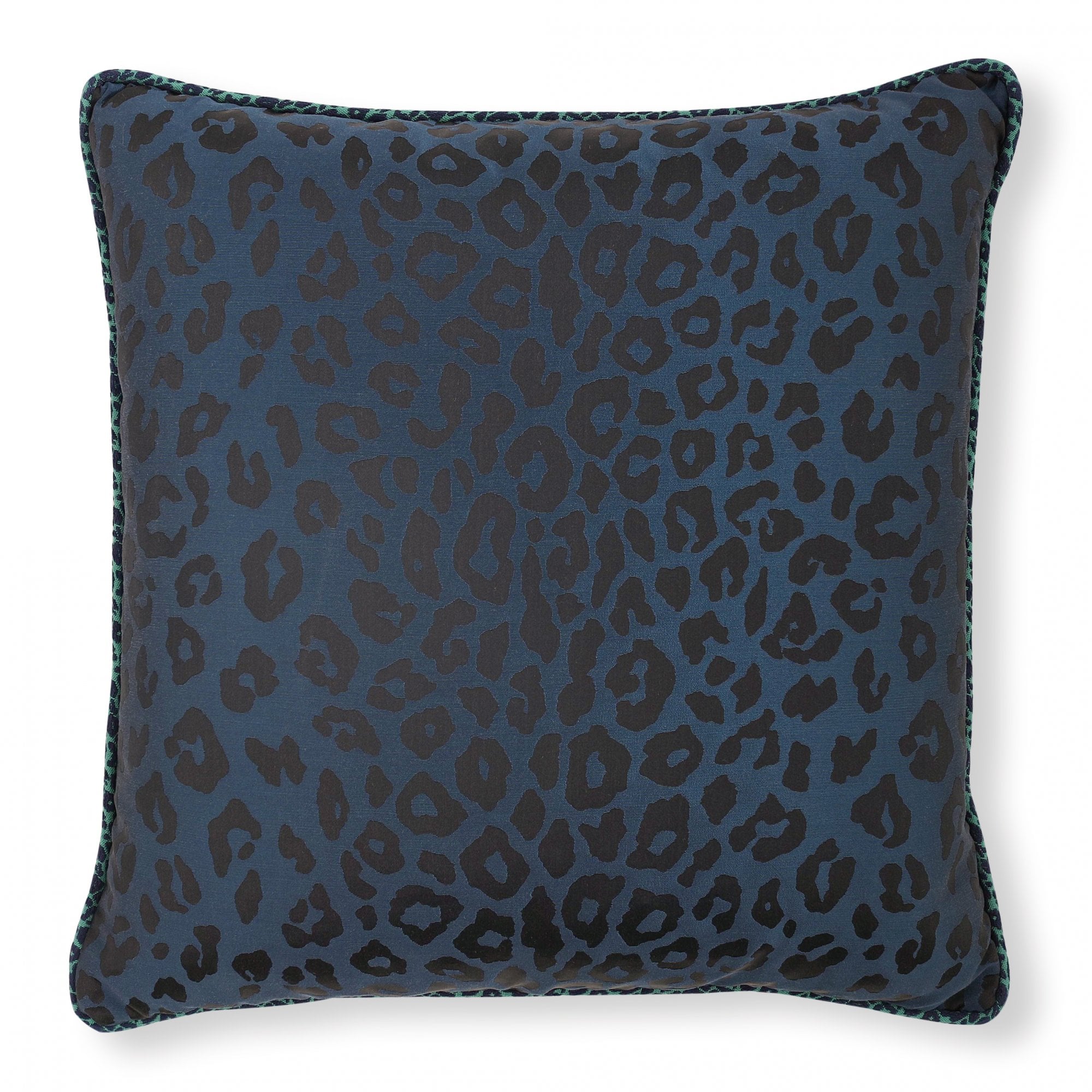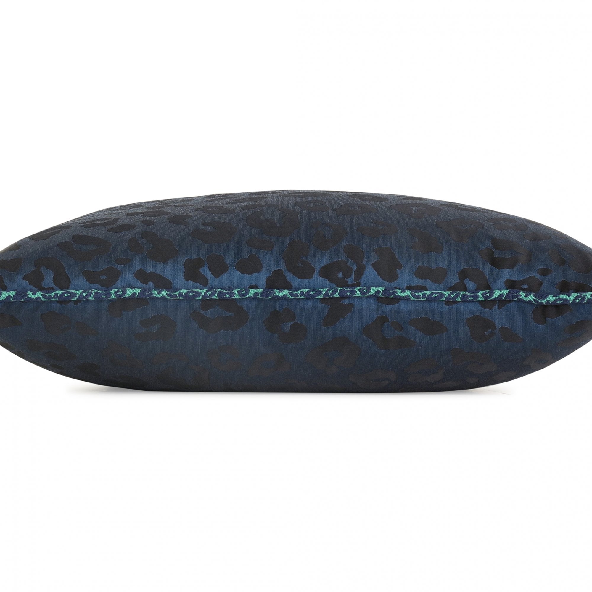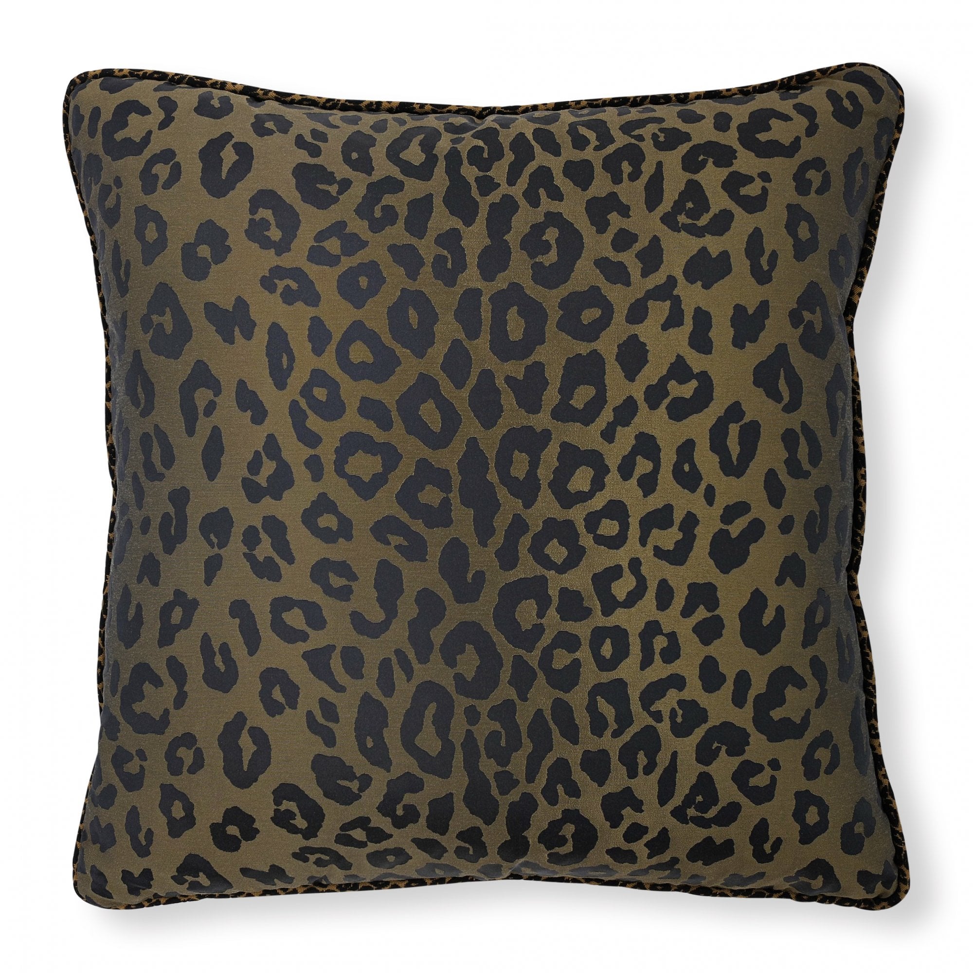 Lustrous spots of leopard embellish this luxurious jacquard weave cushion with a silk-like quality, piped in a playful coordinating leopard braid.