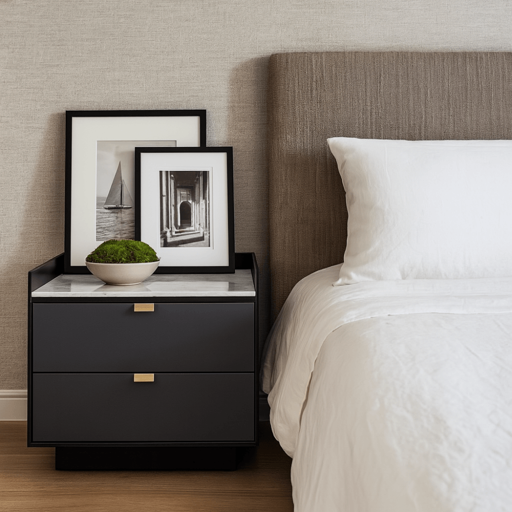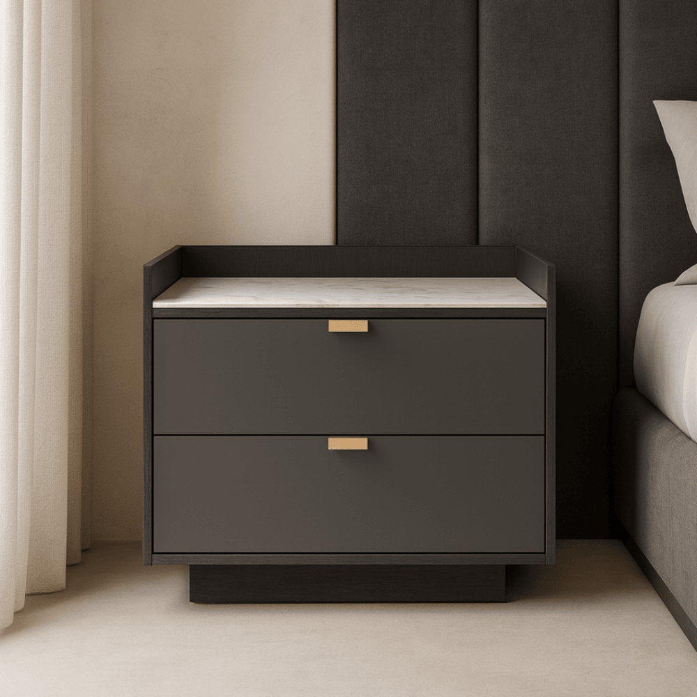 The brass detail handles further elevate the table's aesthetic appeal, adding a touch of opulence and creating a cohesive look. With two deep storage drawers, the Saviour Bedside Table provides ample space to keep your essentials organized and within easy reach.
