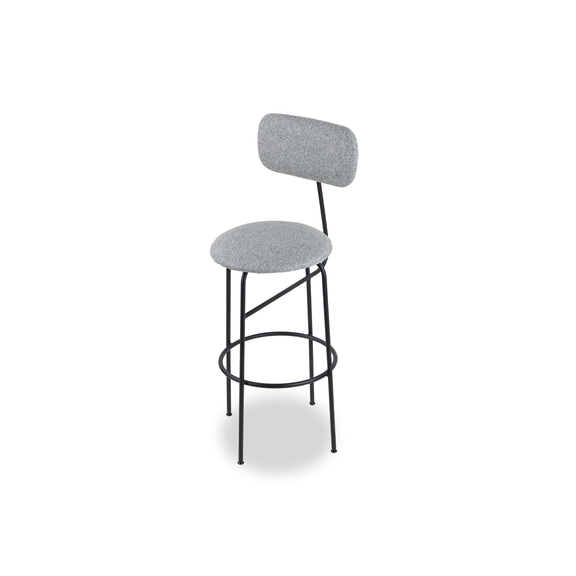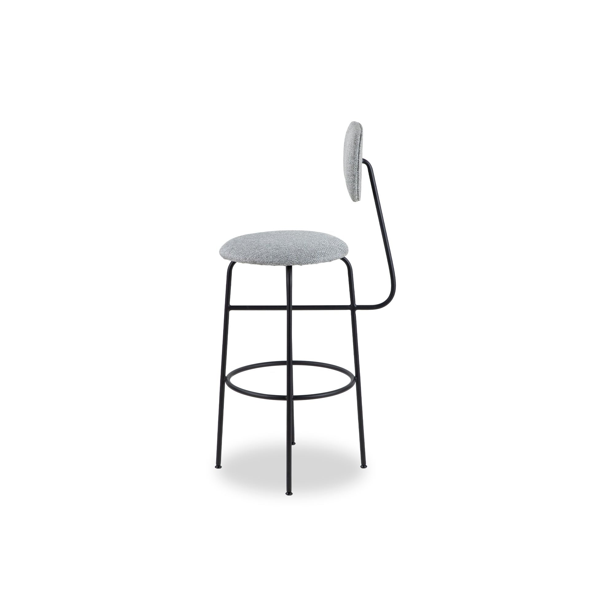 Elevate your bar area with the Seclus Stool in Emporio Grey, featuring a comfortable seat and striking matt black steel legs. Its refined design seamlessly fits upscale homes and elegant hotel settings, offering a touch of luxury wherever it’s placed.