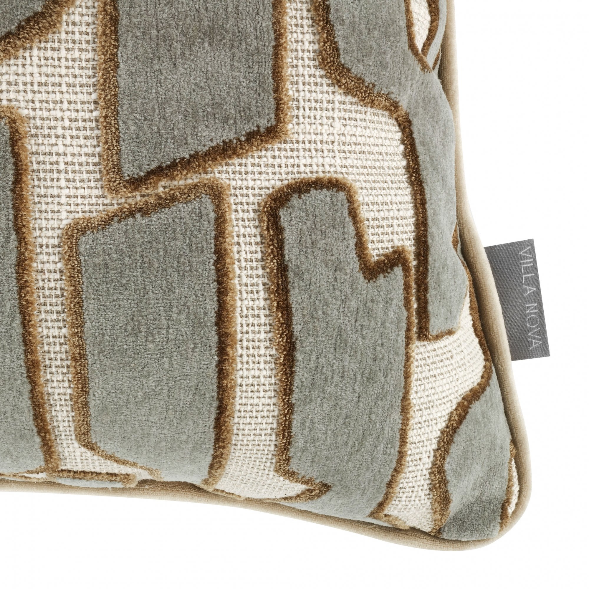 An eye-catching geometric design, the Serac cushion features distinctive decorative cut velvet shapes mimicking abstract landforms. Contrasting yet complementary piping adds the perfect finishing touch to this statement, textured cushion.