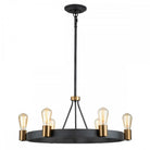 With striking simplicity, the Silas 6lt pendant is a throwback to an era where basic, hardworking design was expected. A single, wide Aged Zinc finish ring does the heavy lifting, but Heritage Brass finish fitters and accents are the perfect complement. The result is an uncluttered, industrial centrepiece to any space. All pendants can be mounted without the rods to make a semi-flush for low ceiling installations.
