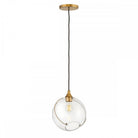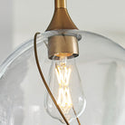 Mesmerisingly asymmetrical with a mid-century modern flair, the Skye single pendant light showcases a clear, open globe, encircled with a slender brass ring. The opening is off centre and the Heritage Brass ceiling pan pulls the look together perfectly.