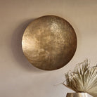 The Southwold Textured Round Antique Brass Wall Deco is crafted from sheet iron and finished in an elegant antique brass hue. Its large in scale, 100cm diameter with intricate hand-textured detailing, adding a unique and sophisticated touch. The carefully applied detailing enhances its appeal, giving it a beautifully antiqued yet refined appearance. Although large in scale, it is lightweight and easy to position. For decorative purposes only , not advisable for outdoor use.