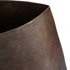 The Southwold Textured Oval Antique Brass Vase is crafted from sheet iron and finished in an elegant antique brass hue. Its tall, oval barrel shape is complemented by intricate hand-textured detailing, adding a unique and sophisticated touch. The carefully applied detailing enhances its appeal, giving it a beautifully antiqued yet refined appearance. Although large in scale, the vase is lightweight and easy to position. For decorative purposes only, the vase is not water safe and is available in two sizes: 80 cm and 100 cm in height.