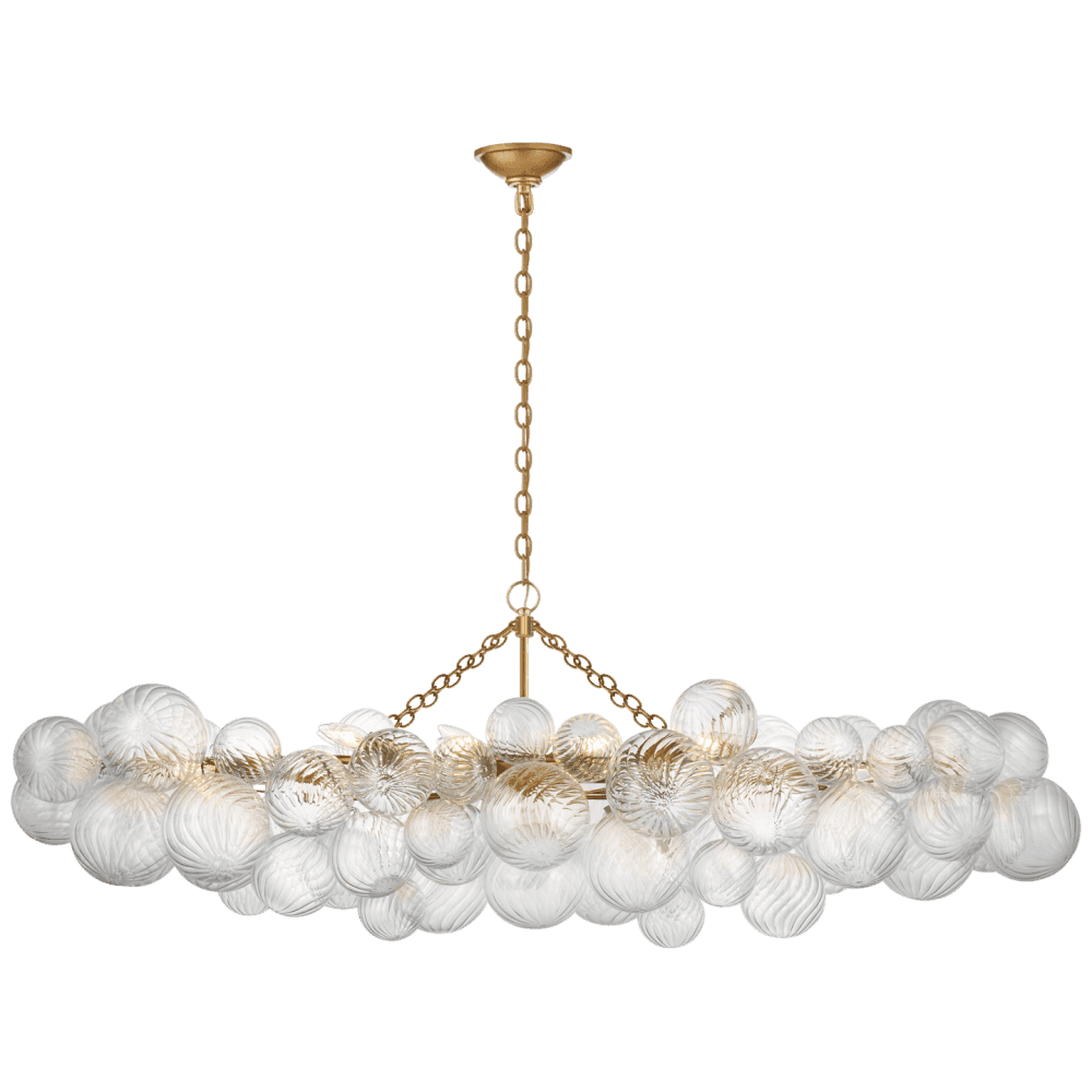 Talia Gold Gild Large Linear Pendant Ceiling Light with Clear Swirled Glass Shade