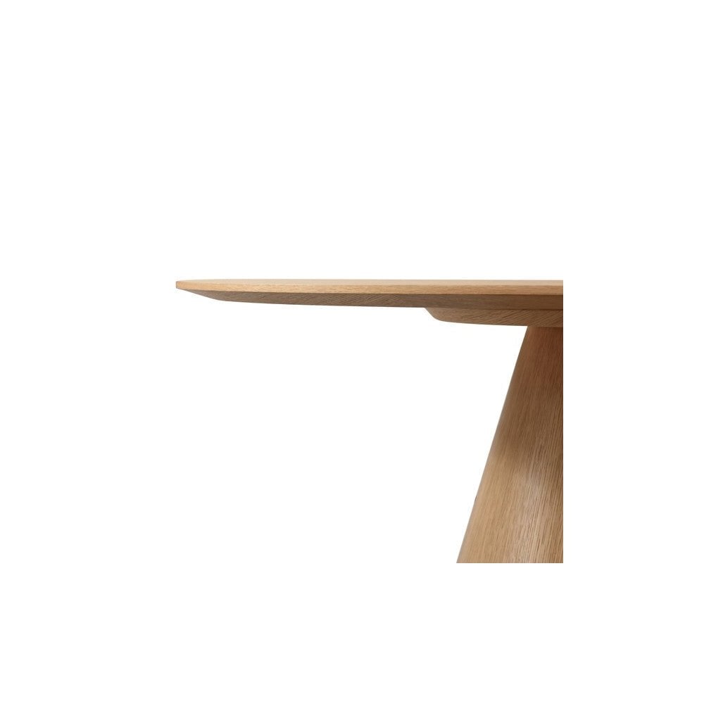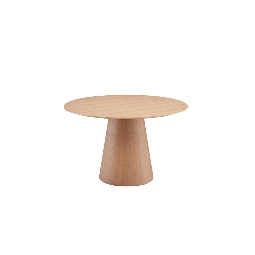 Introducing the Tavamo Dining Table, a timeless piece of furniture that will add classic, elegant style to any dining space. This round table features a light oak veneer with a natural colour, a 135cm diameter table top, and an elegant tapered cone cylindrical base design. Its classic and simple design makes it an ideal addition to any room, from formal dining rooms to casual living spaces. Whether you're hosting large dinner parties or just enjoying an intimate meal, the Tavamo Dining Table will be a perfect addition to your home.