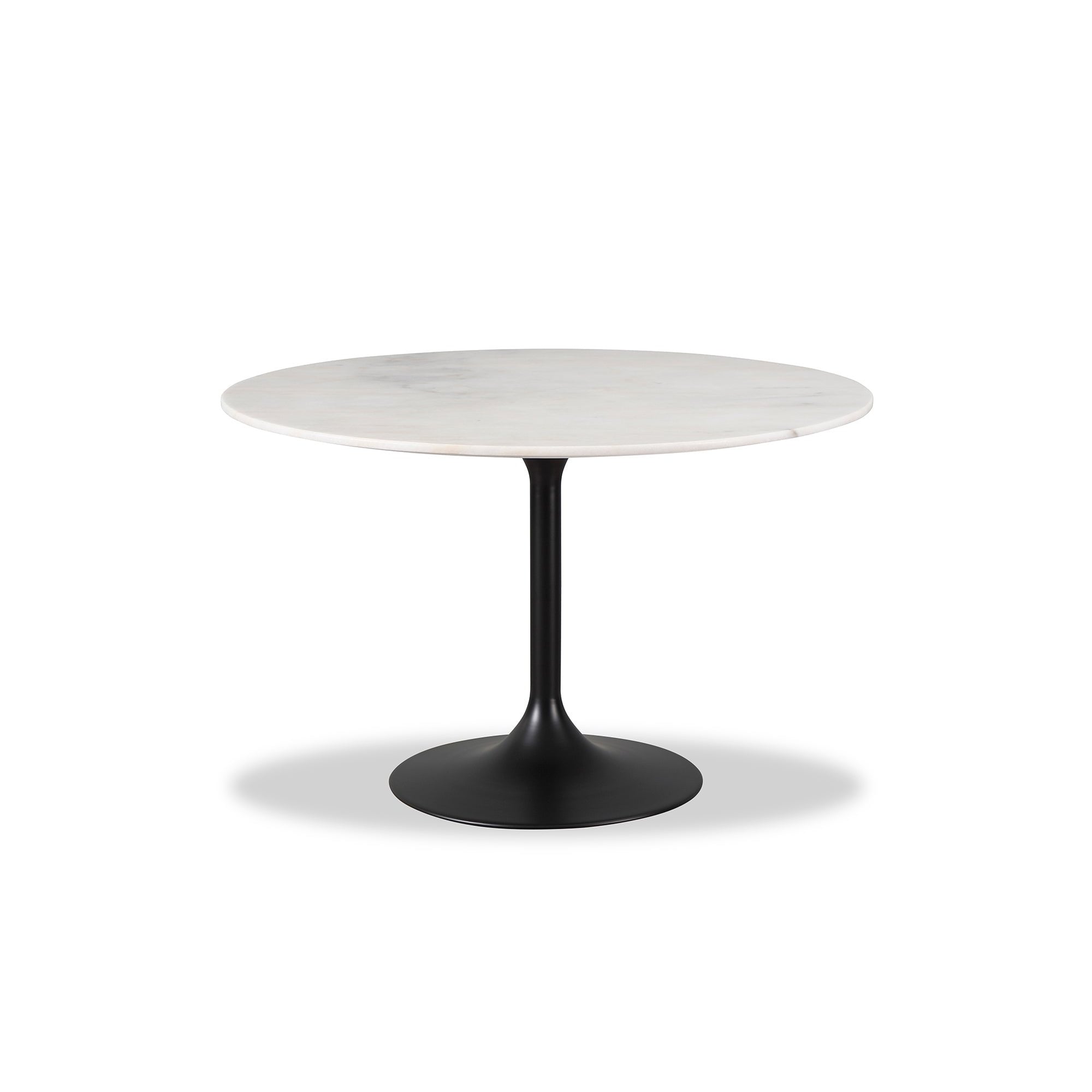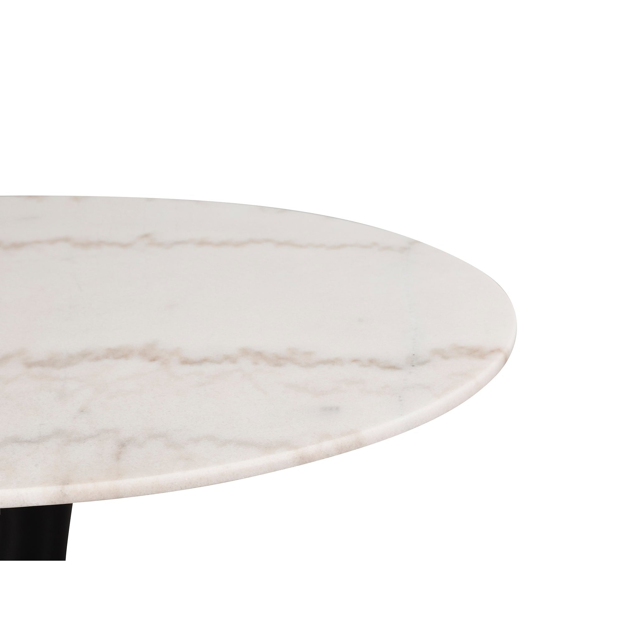Elevate your dining experience with the Telma Dining Table, a harmonious blend of contemporary style and functionality. Featuring a stunning round white marble top supported by an elegant black painted metal base, this table is perfect for any modern dining space. Ideal for both home and hospitality environments, it creates a welcoming atmosphere for memorable gatherings.