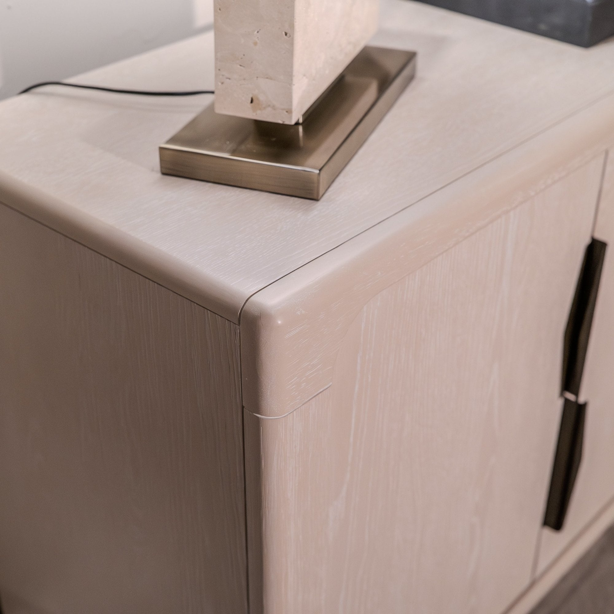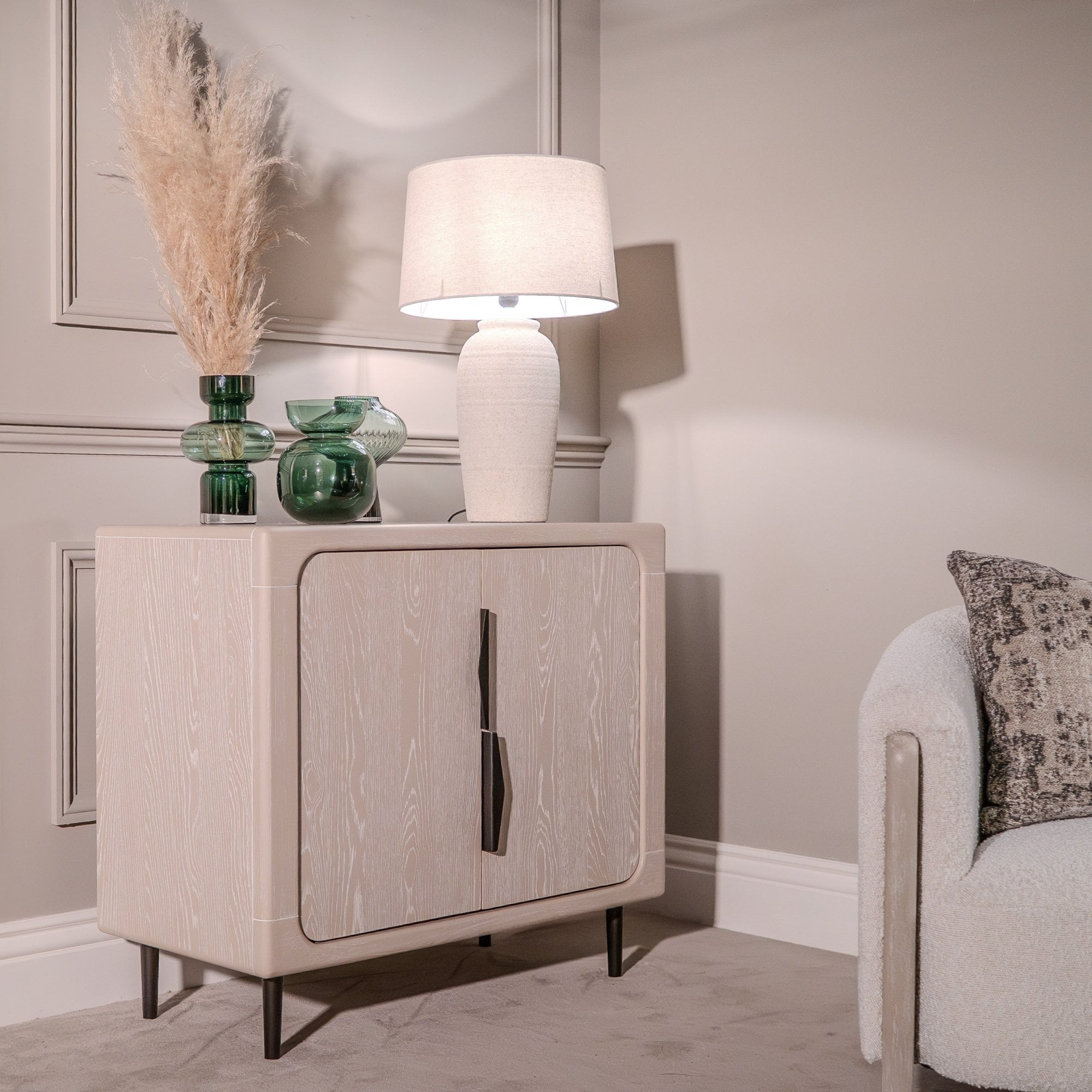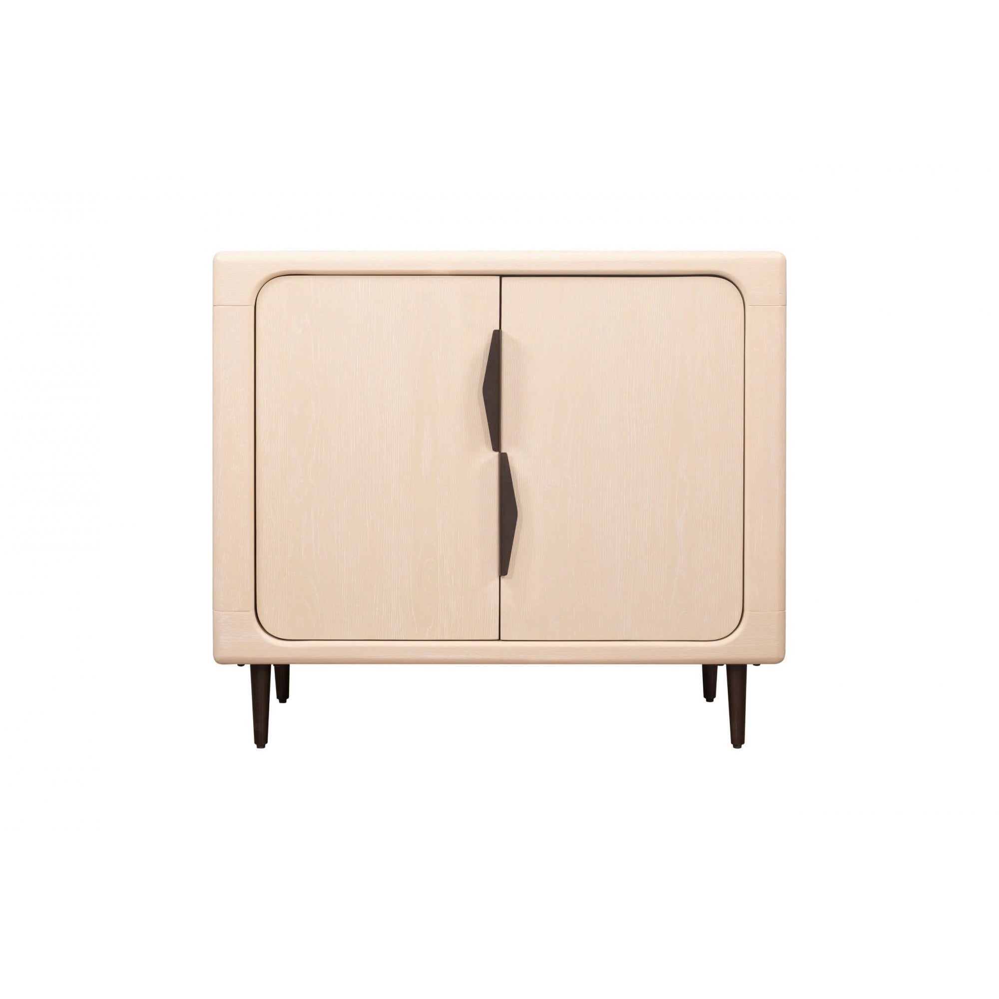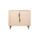 Sleek and versatile, this two-door cabinet offers a stylish solution for organizing your space. Made from durable light oak wood, its soft rounded edges complement its minimalist design. Inside, it features adjustable shelving to accommodate items of various sizes, making it perfect for storing books, tableware, or decorative pieces. The contrasting black handles are ergonomically designed for ease of use while adding a modern touch. Its compact size allows it to fit seamlessly into living rooms, dining areas, or bedrooms.